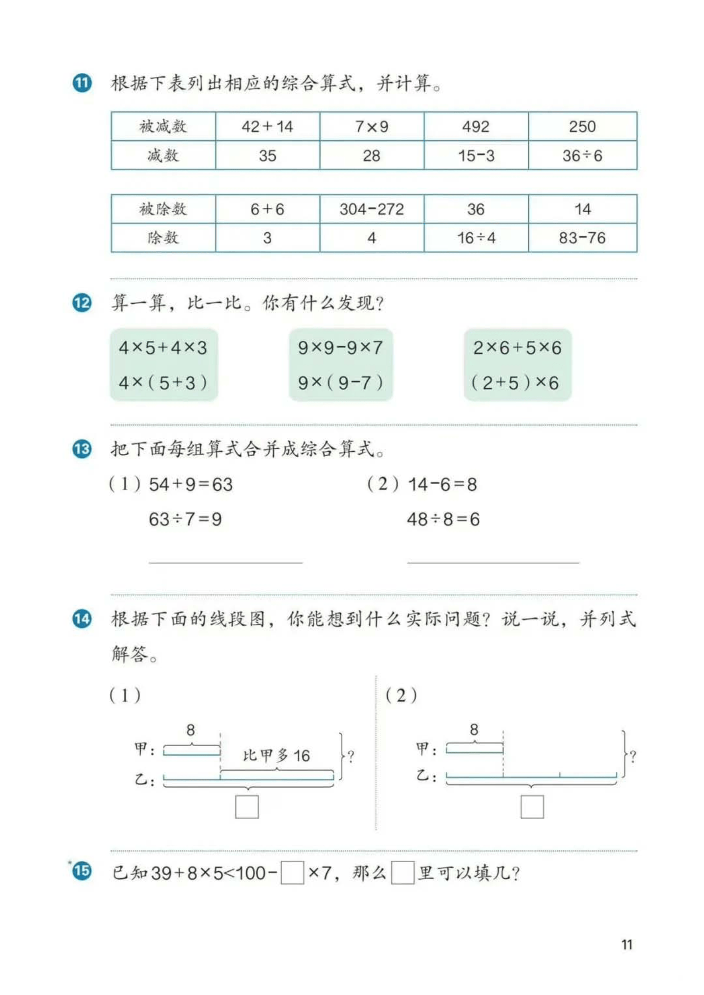 新教材打破传统教学模式,以 “生活场景 + 实践探究” 为特色,通过超市购物计算、操场测量周长等贴近生活的情境,将抽象数学概念具象化。同时,借助数学广角中的推理游戏、图形拼摆等互动环节,引导学生在动手操作中锻炼逻辑推理能力与空间思维,不仅夯实运算、单位换算等基础技能,更为后续数学学习培养综合素养。