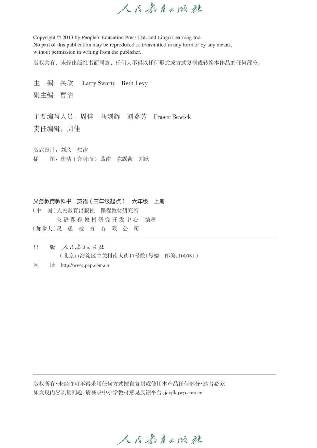 人教版PEP六年级英语上册电子课本图片版在线阅读