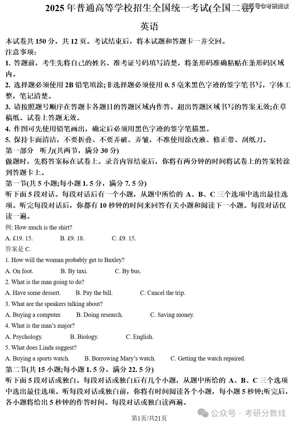 今天给大家准备的是:2025年高考英语、数学、语文、物化生、政史地真题及答案(含新课标1卷、新课标2卷、北京上海天津卷等全国各省市高考试题+答案详细解析+英语听力及原文),需要的小伙伴,可以按照下面的方式,下载25高考的真题和答案!