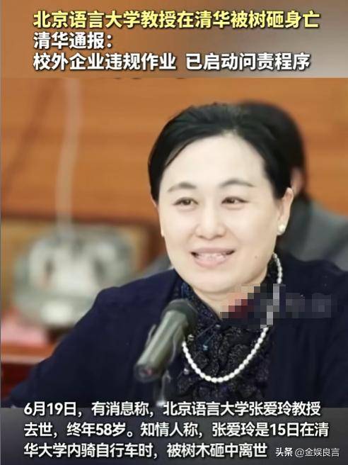 北京大学教授张爱玲,在前往清华大学与自己的女儿见完面后,正走在回去路上的时候,被路边施工队刚刚砍下的一棵枯树砸中,经抢无效后身亡,校方紧急回应,政府介入。
