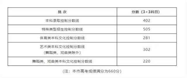 今年上海的本科线是402分,特殊类型招生控制线是505分。