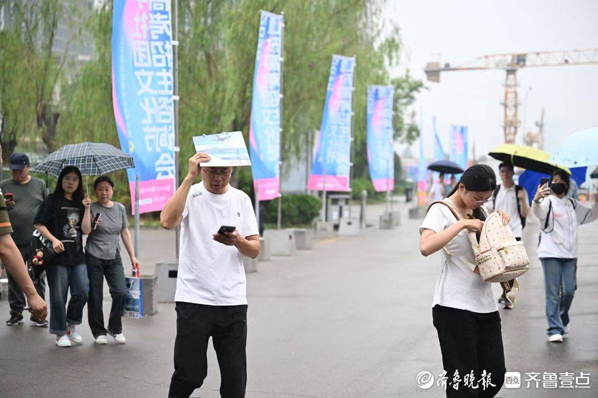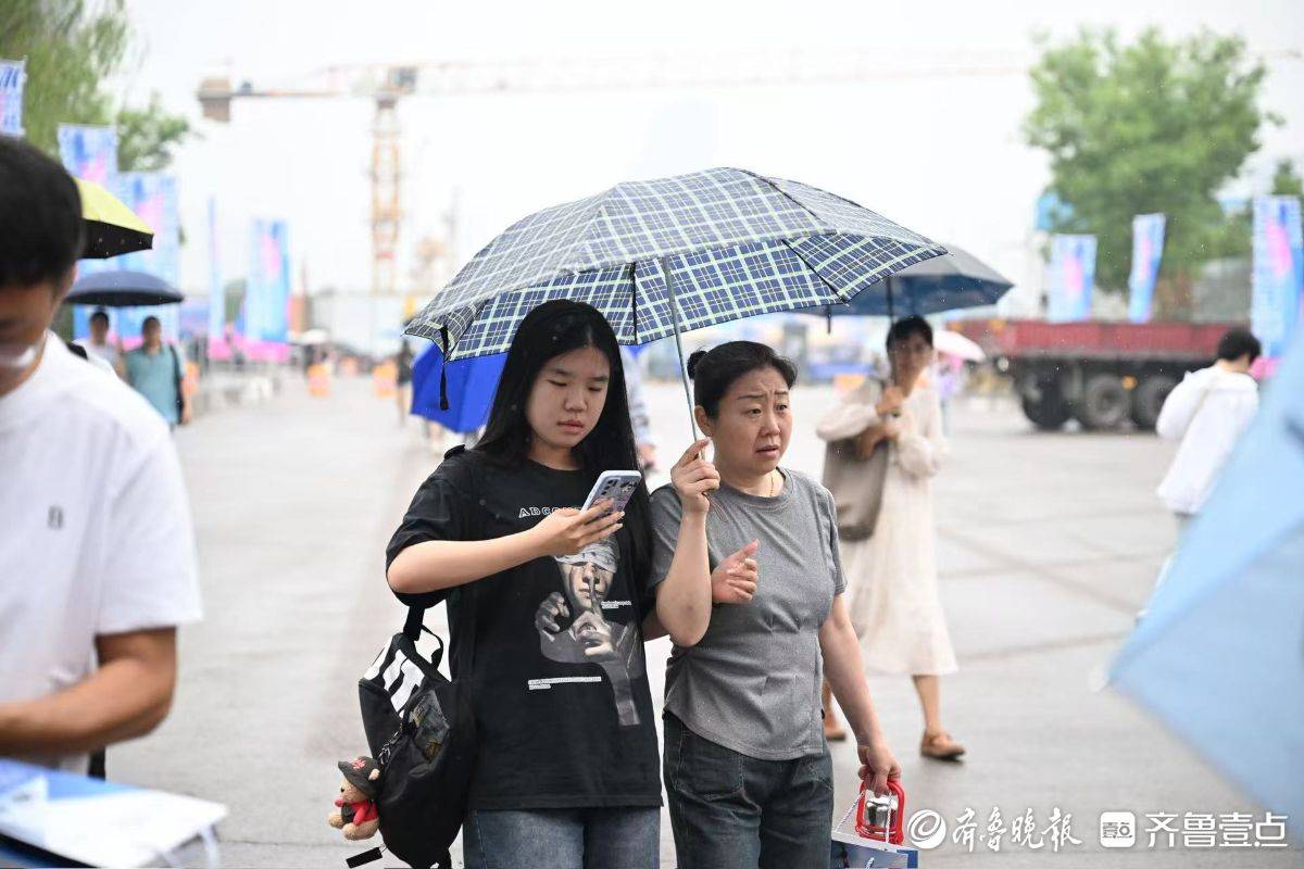2025年山东高考招生咨询会,一大早考生家长冒雨前来