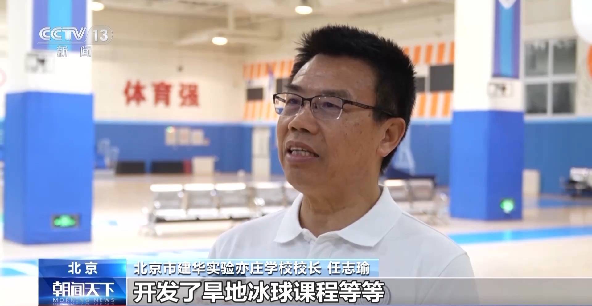 北京市建华实验亦庄学校校长 任志瑜:比如说小学将篮球,足球,排球三大球等拉入了必修模块,中学部结合冰雪运动,开发了旱地冰球课程等。