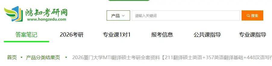 2026厦门大学MTI翻译硕士考研全套资料【211翻译硕士英语+357英语翻译基础+448汉语写作与百科知识】(真题答案+笔记资料)-鸿知考研网