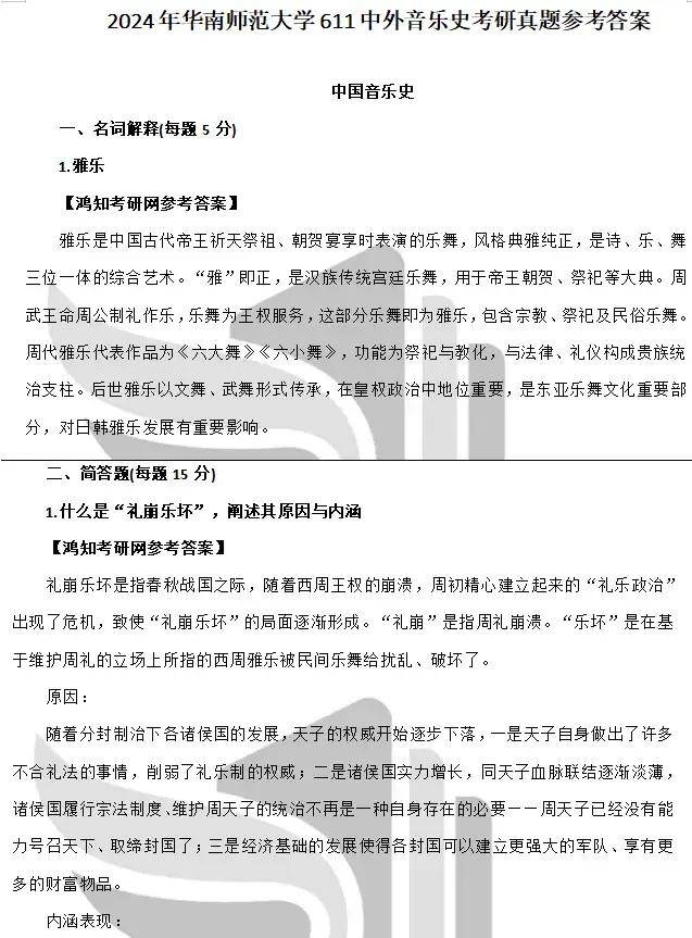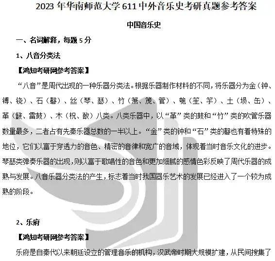 2024年华南师范大学 611中外音乐史考研真题参考答案