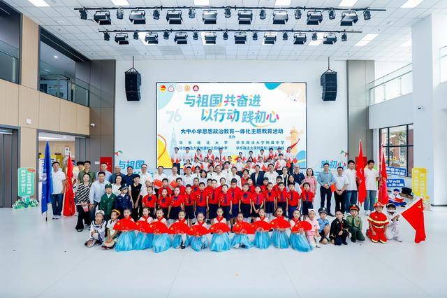 山河锦绣,盛世华章。在祖国母亲76周年华诞之际,我校携手华东政法大学附属松江高级中学、华东政法大学附属中学、华东政法大学附属松江实验学校(以下简称“华政附高、华政附中、华政附校”),以“与祖国共奋进,以行动践初心”为主题,奏响大中小学思想政治教育一体化的动人新篇章。