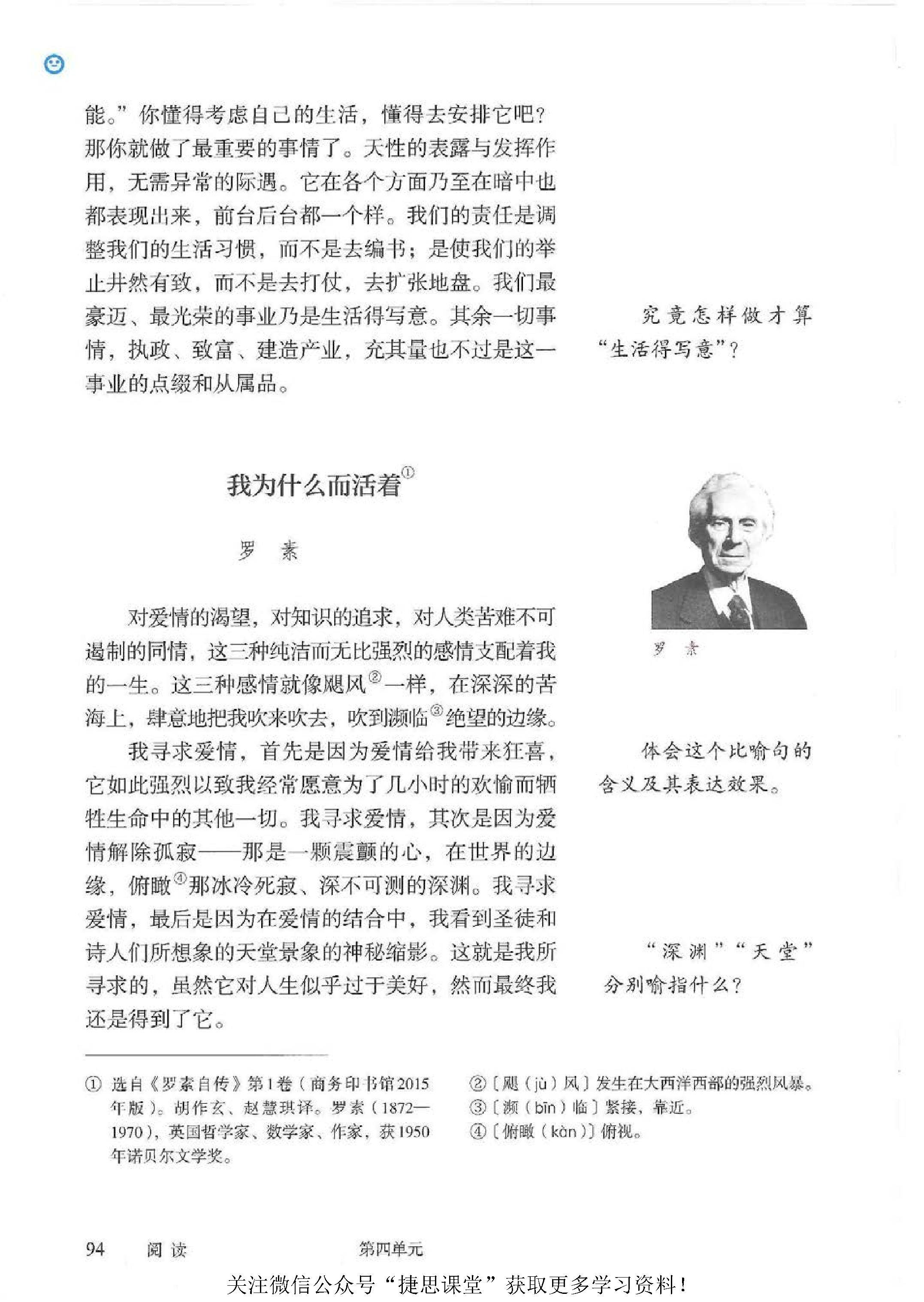 * 散文二篇(永久的生命 / 严文井、我为什么而活着 / 罗素)