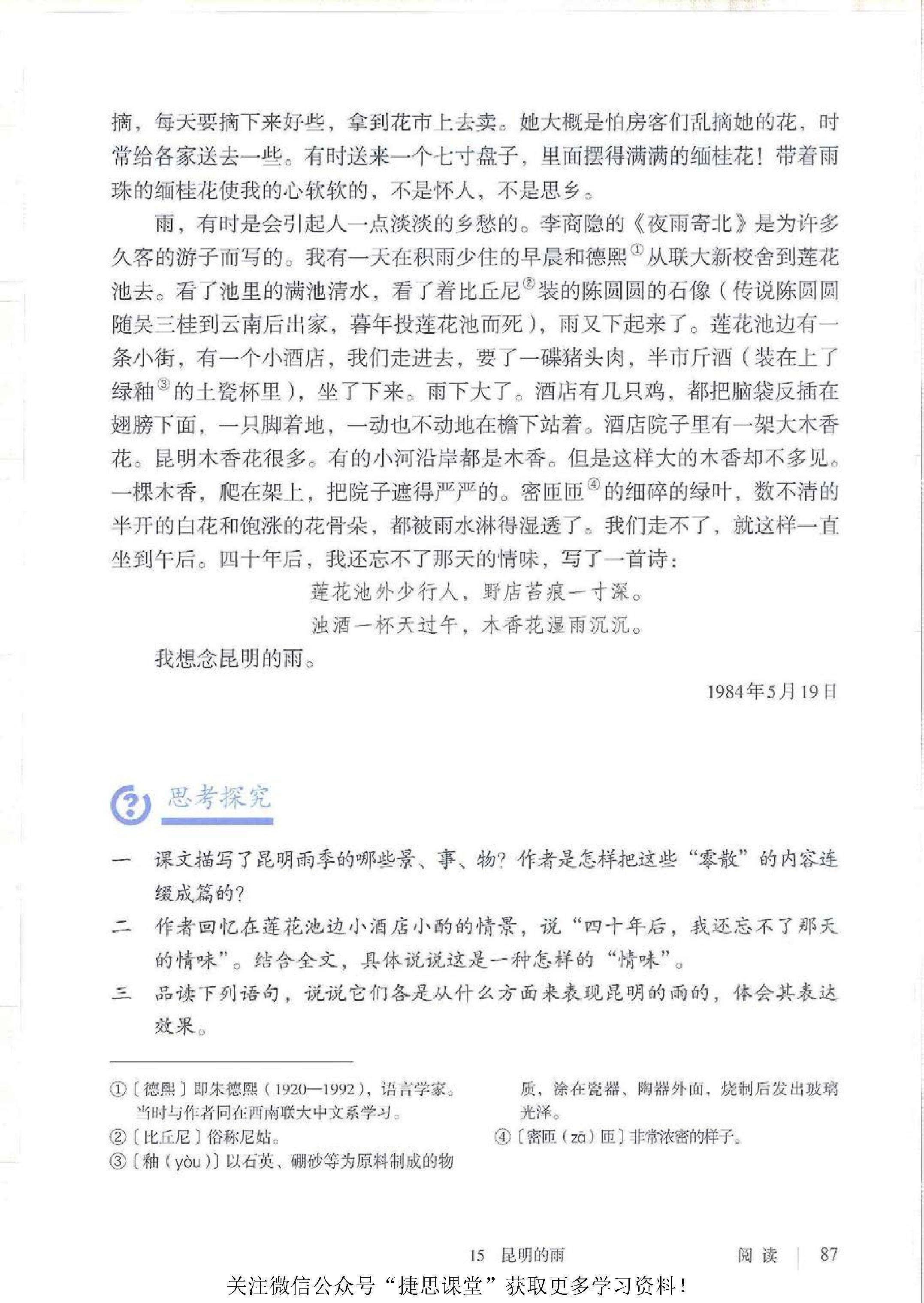 * 昆明的雨 / 汪曾祺