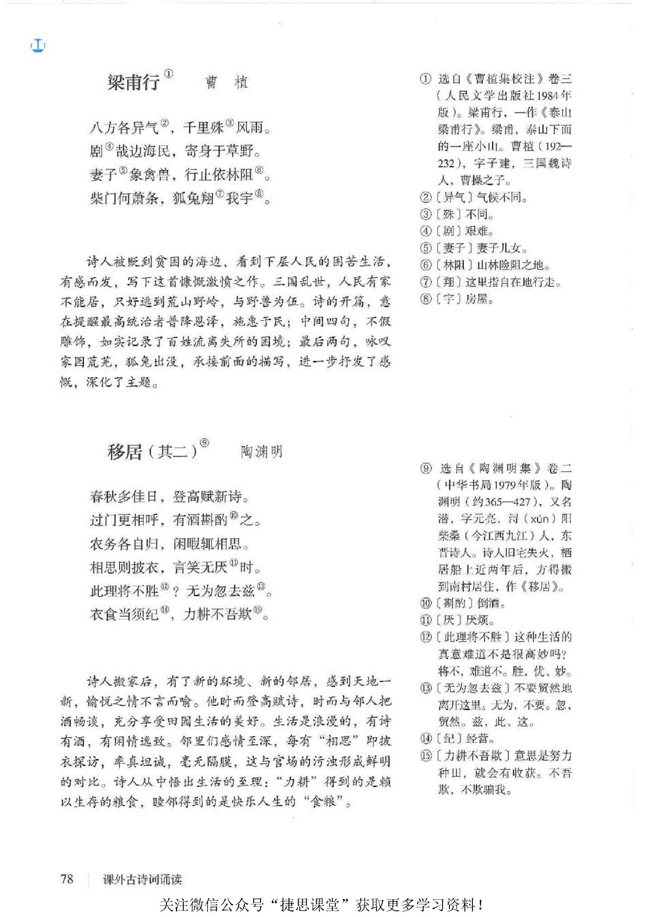 课外古诗词诵读:庭中有奇树 /《古诗十九首》、龟虽寿 / 曹操、赠从弟(其二)/ 刘桢、梁甫行 / 曹植