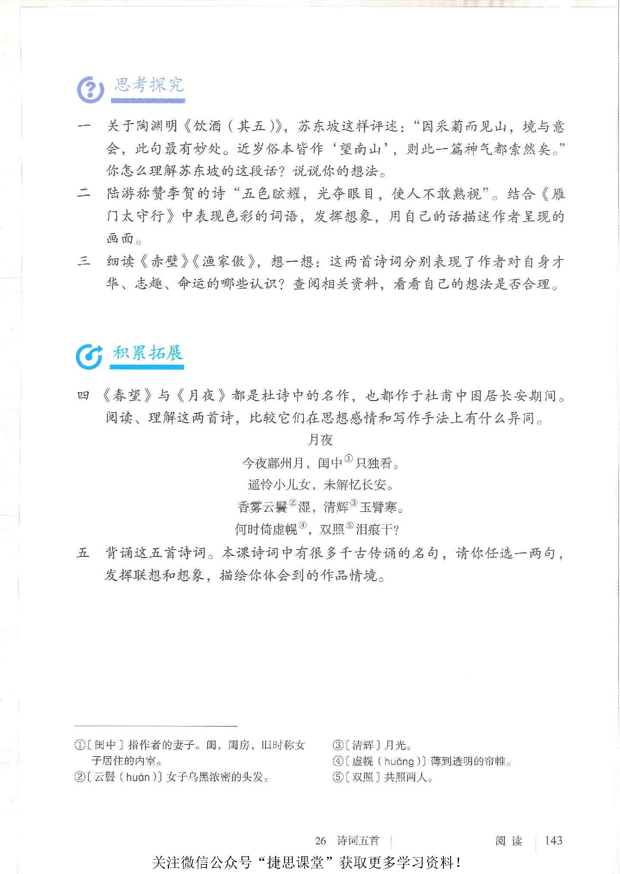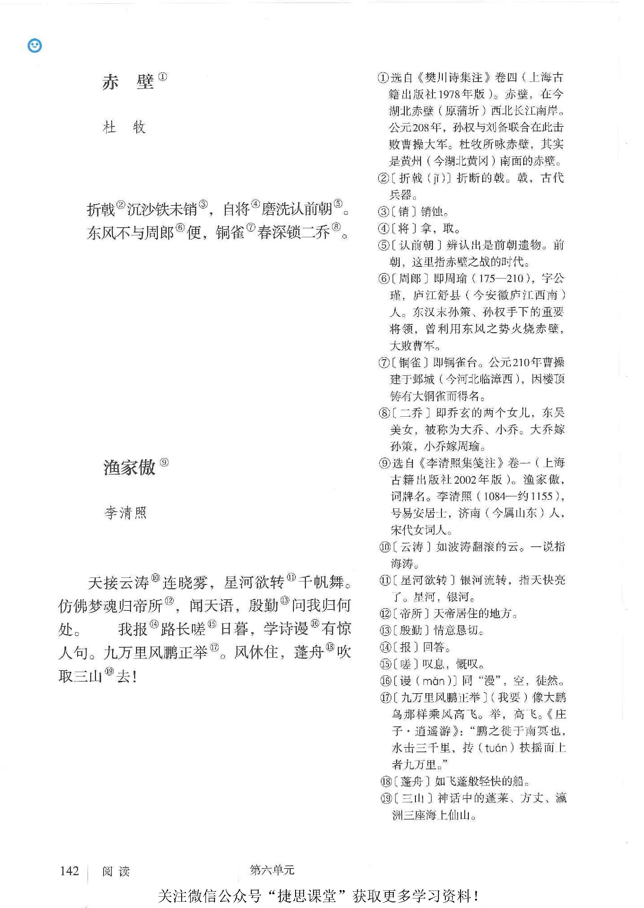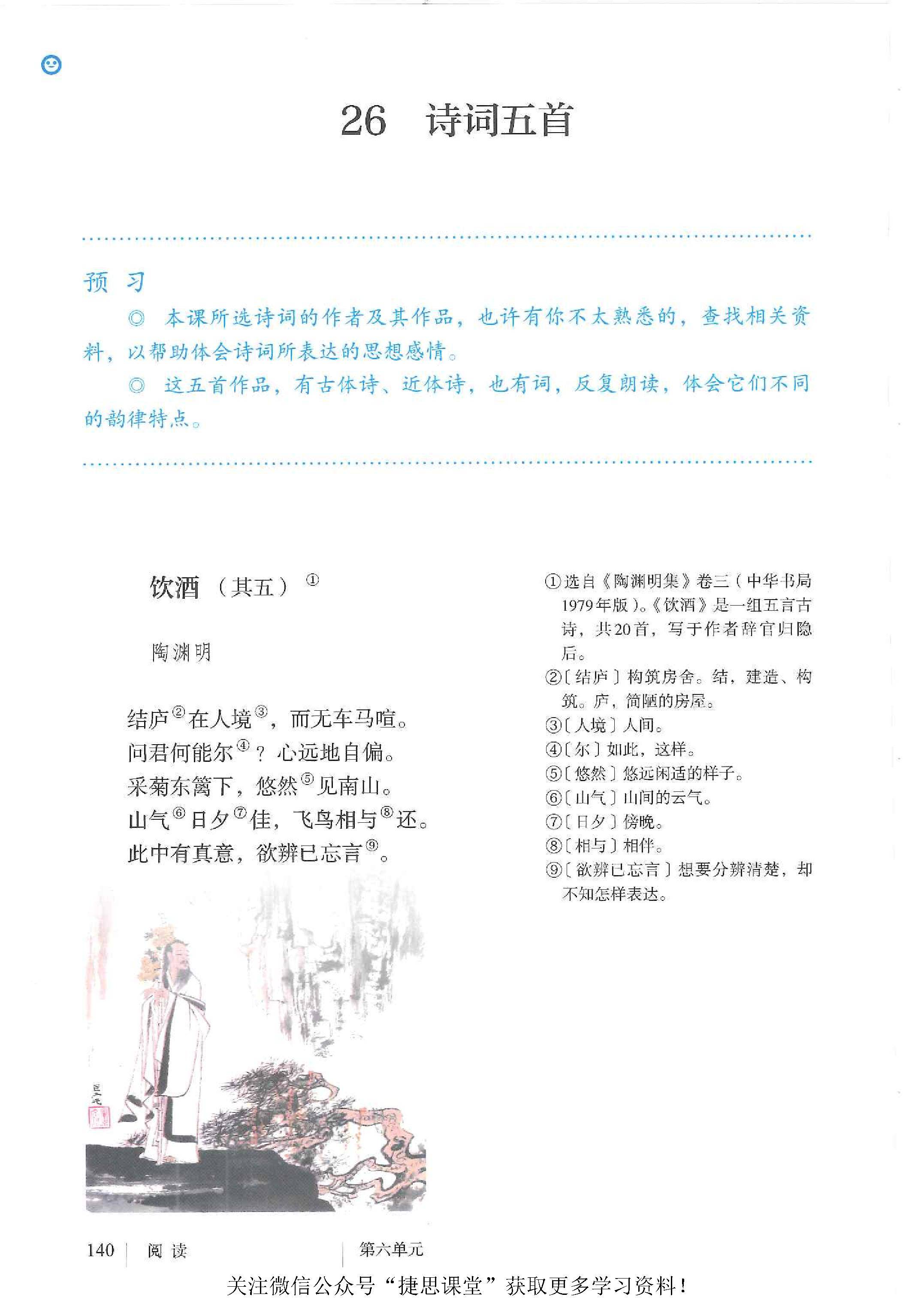 诗词五首(饮酒(其五)/ 陶渊明、春望 / 杜甫、雁门太守行 / 李贺、赤壁 / 杜牧、渔家傲(天接云涛连晓雾)/ 李清照)