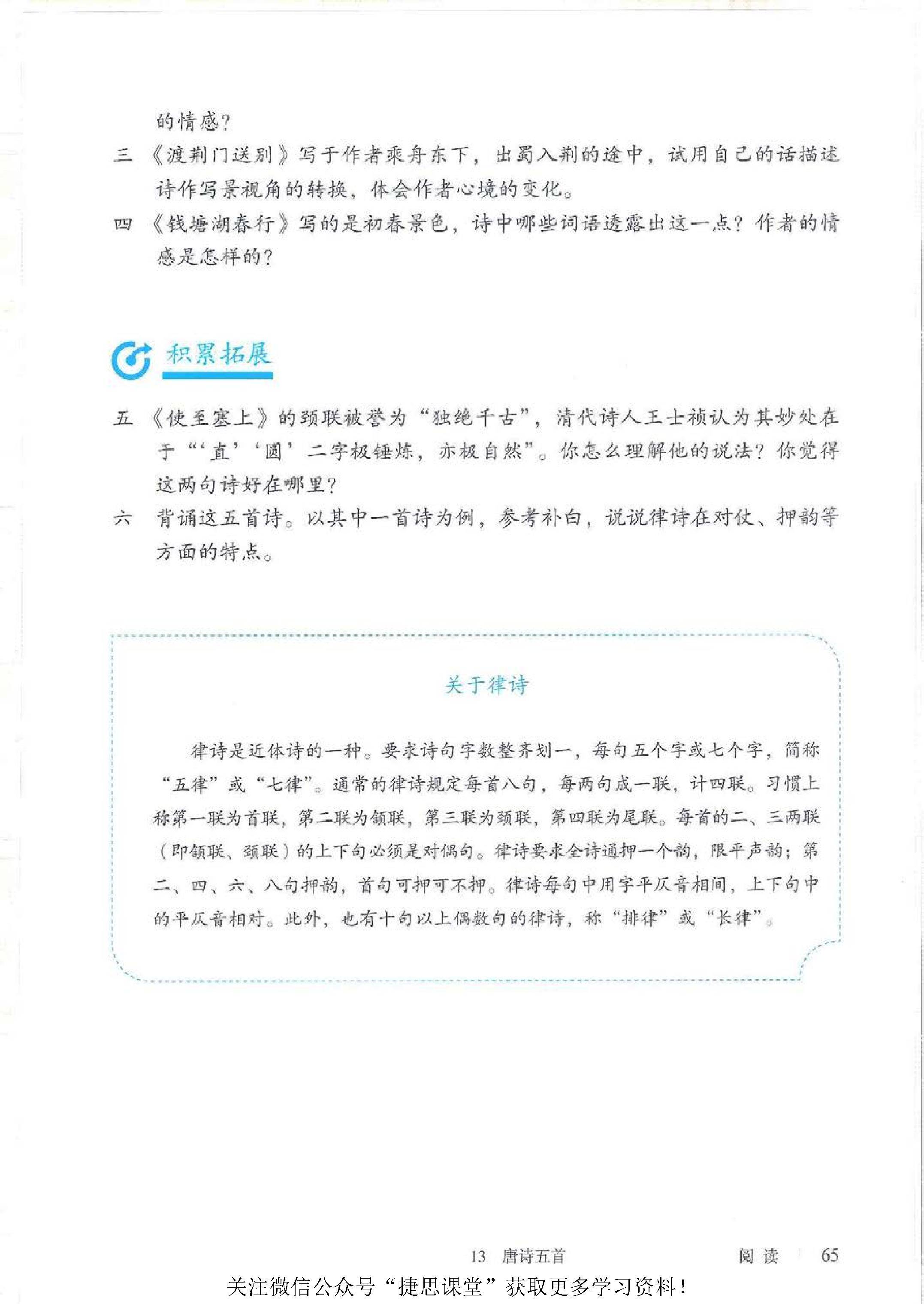 唐诗五首(野望 / 王绩、黄鹤楼 / 崔颢、使至塞上 / 王维、渡荆门送别 / 李白、钱塘湖春行 / 白居易)