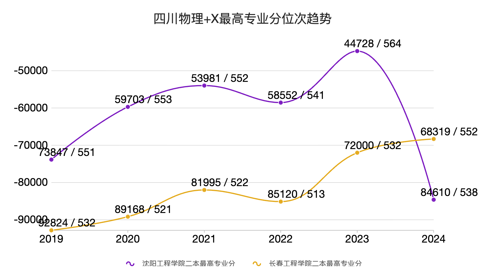 但是在四川,2024年专业录取分数据,最高分长春工程居然超过了沈阳工程14分(当然24年是一个偶然事件)