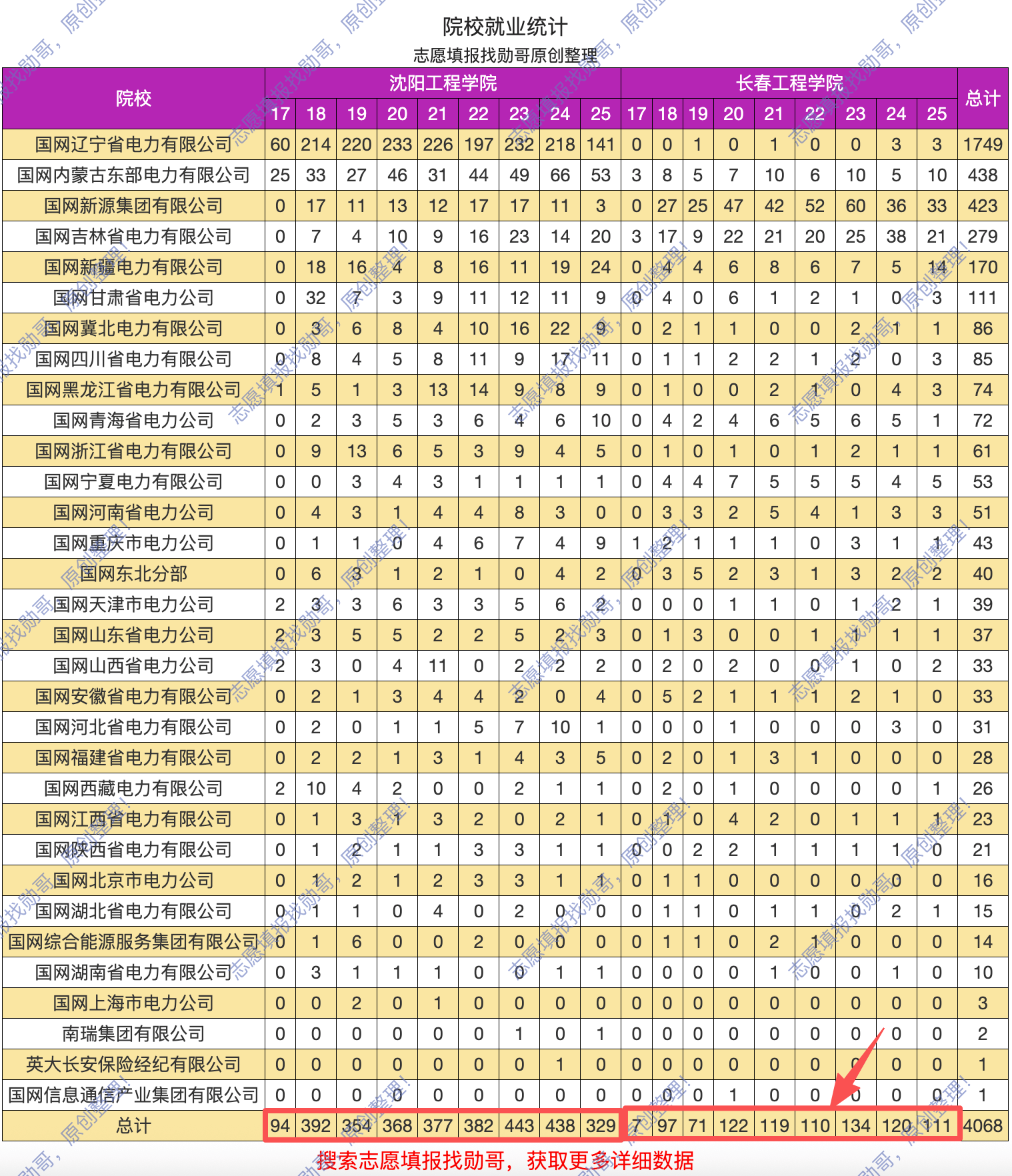 从数据来看,沈阳工程学院进国家电网的人数,远远大于长春工程学院。