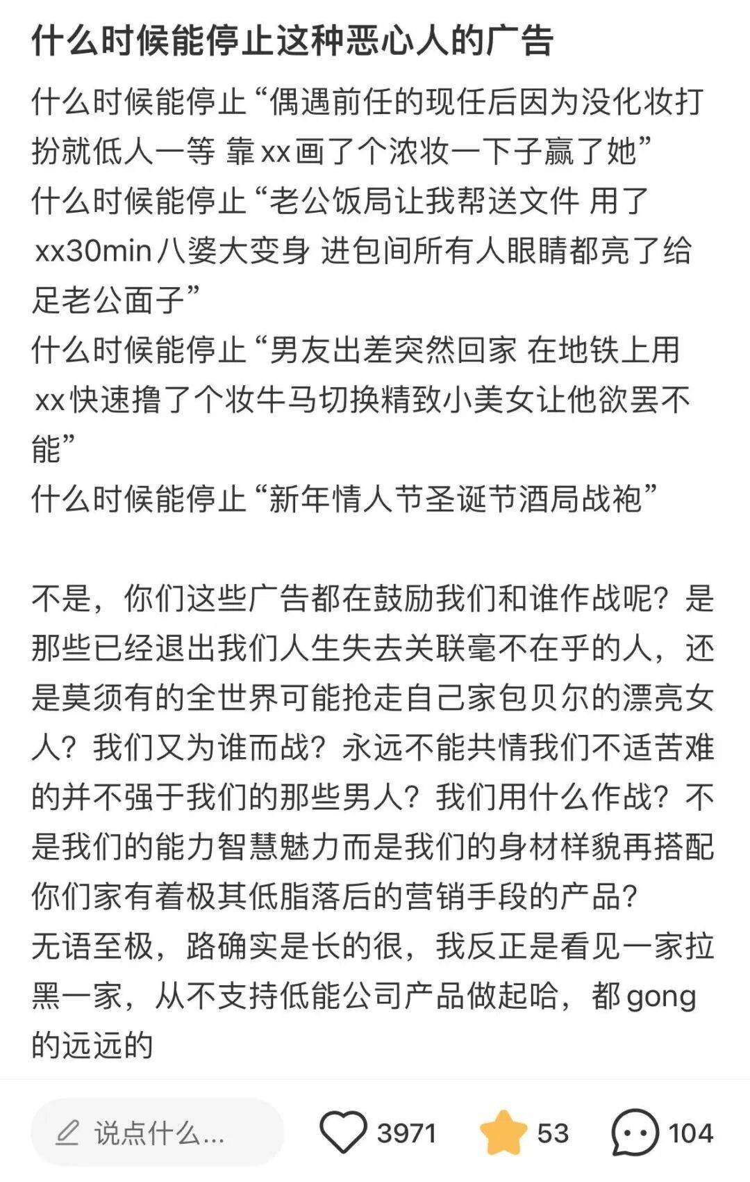 你会发现当下社会,一些喜欢搞雌竞的挑战、玩梗,甚至广告简直是层出不穷。