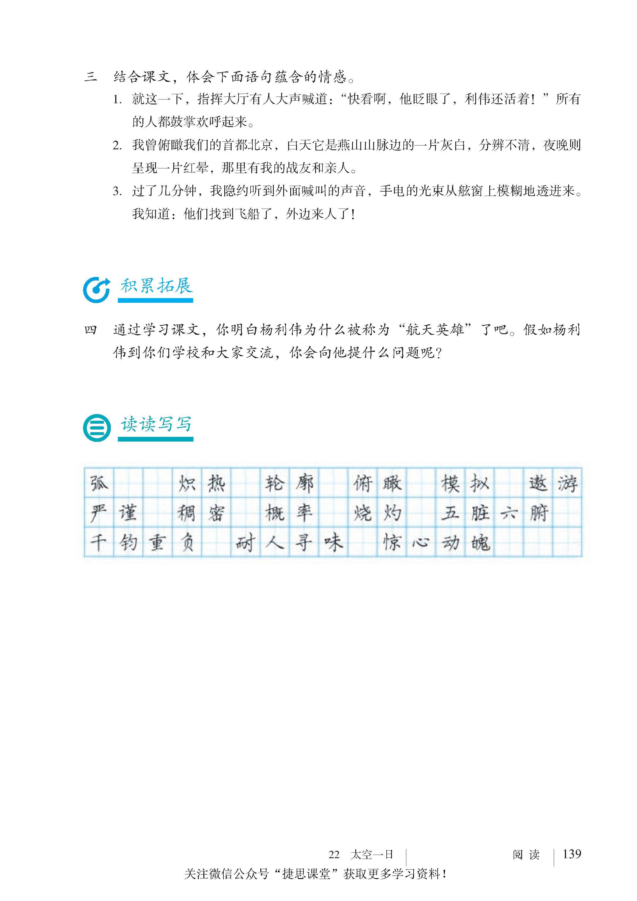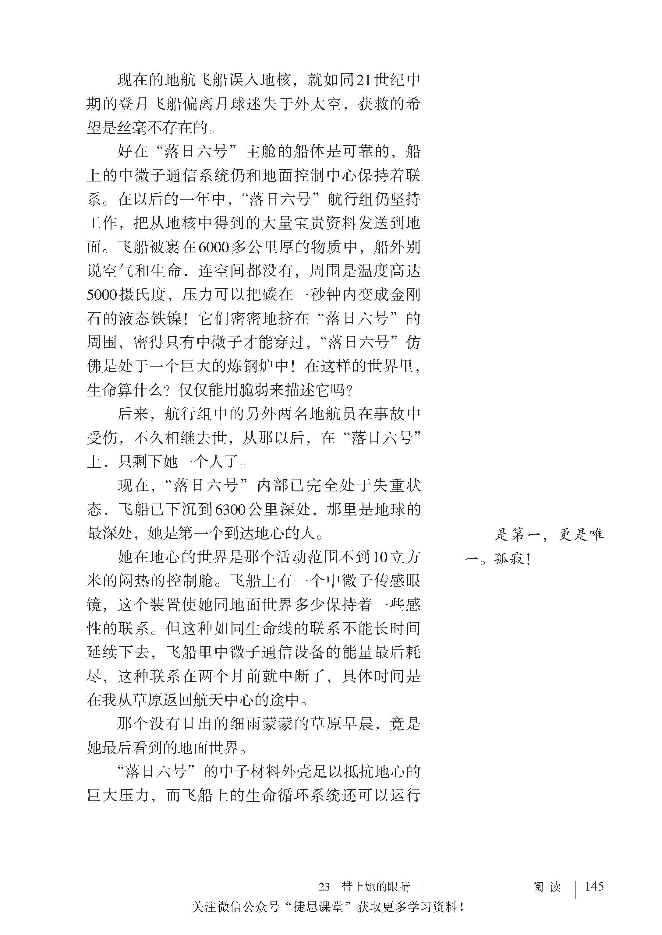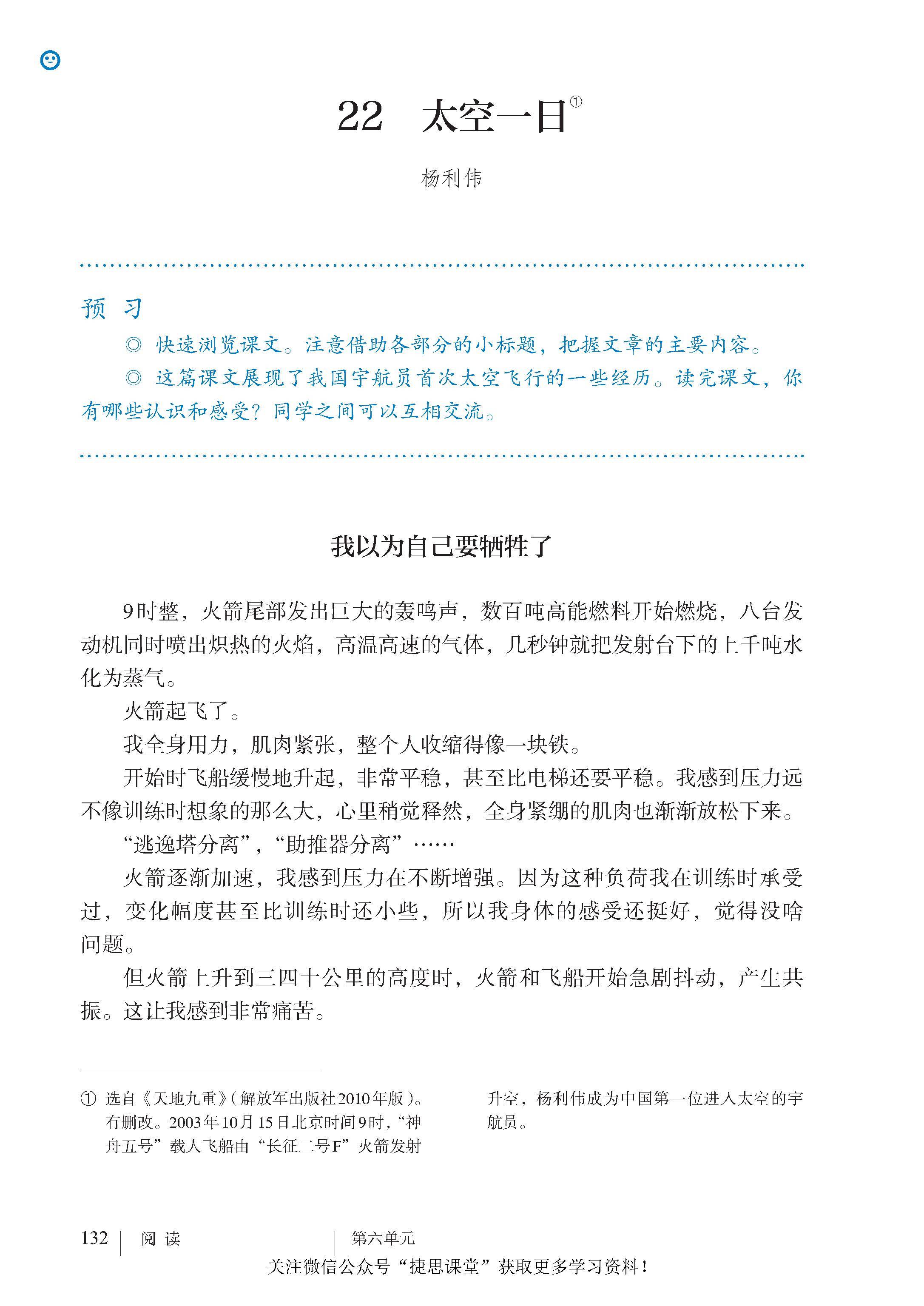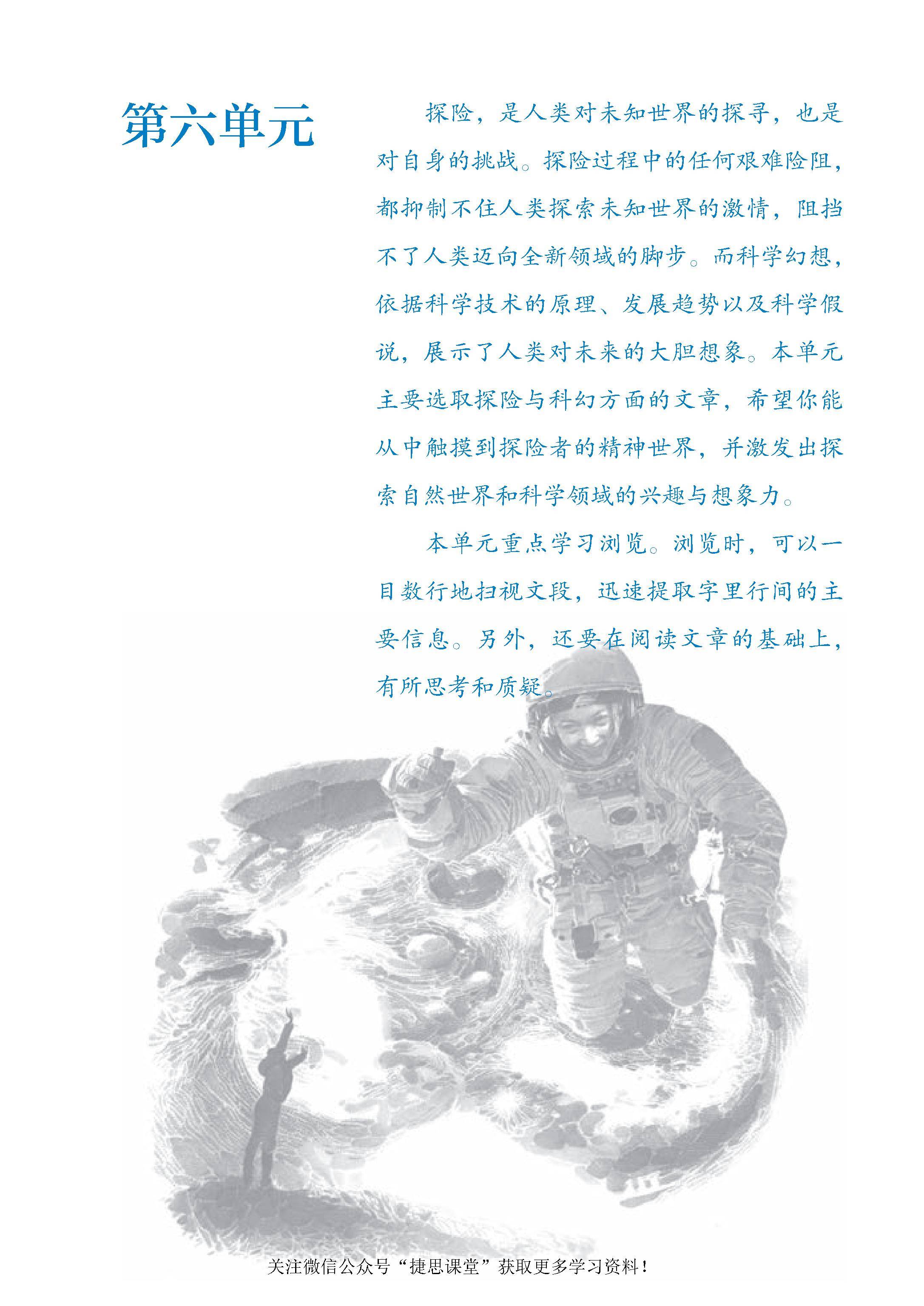 任务一 阅读与探讨22. 太空一日 / 杨利伟23. “蛟龙” 探海 / 许晨24. 带上她的眼睛 / 刘慈欣25. 活板 / 沈括任务二 搜集与整理任务三 表达与呈现课外古诗词诵读