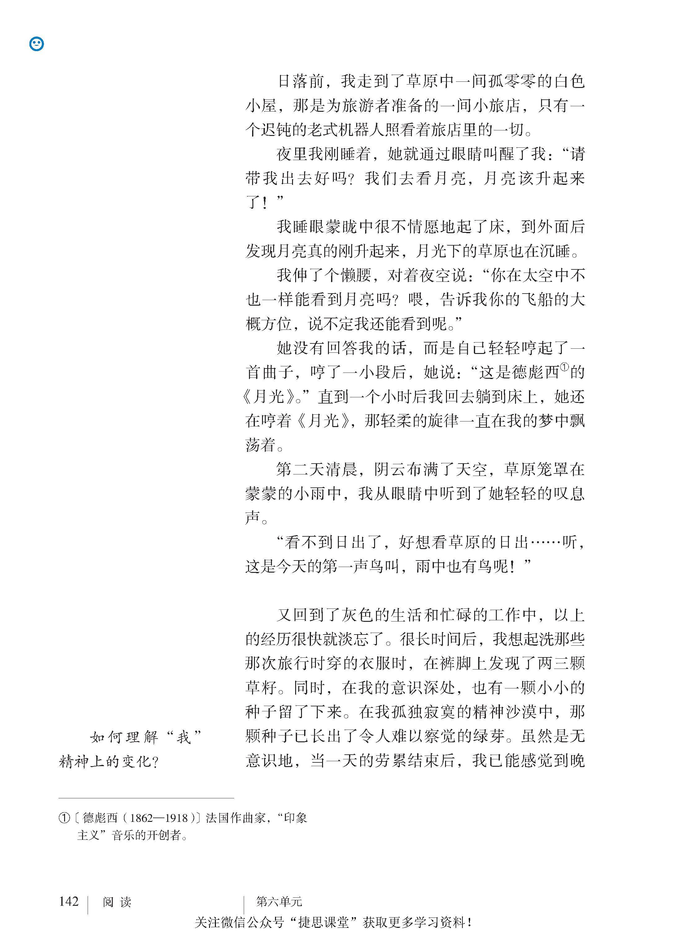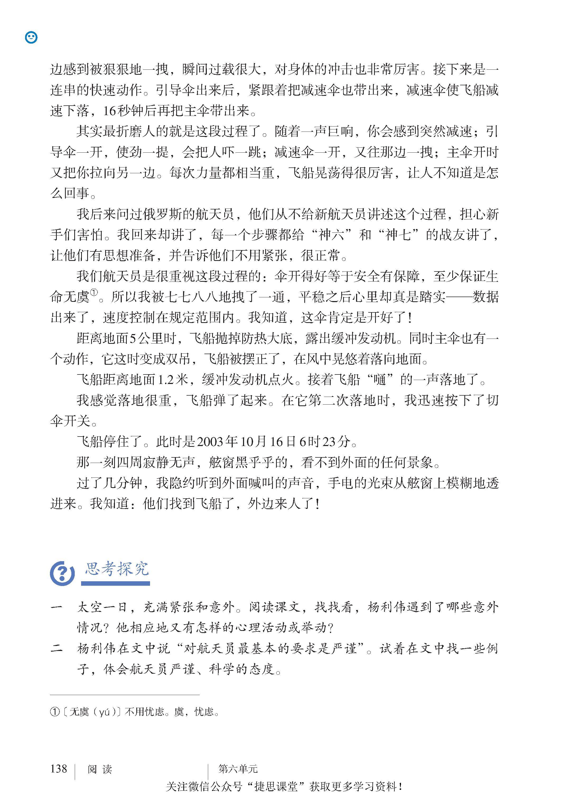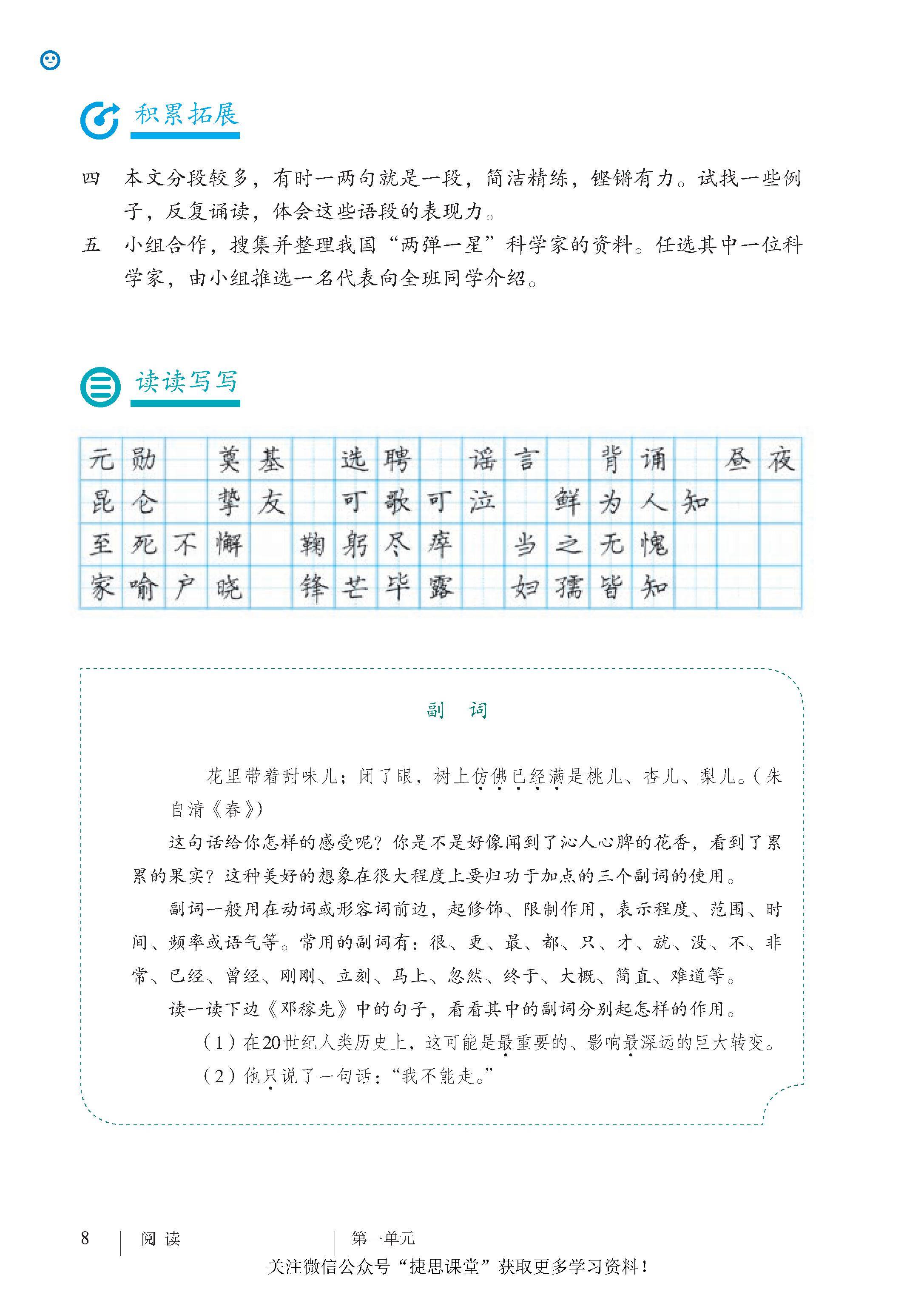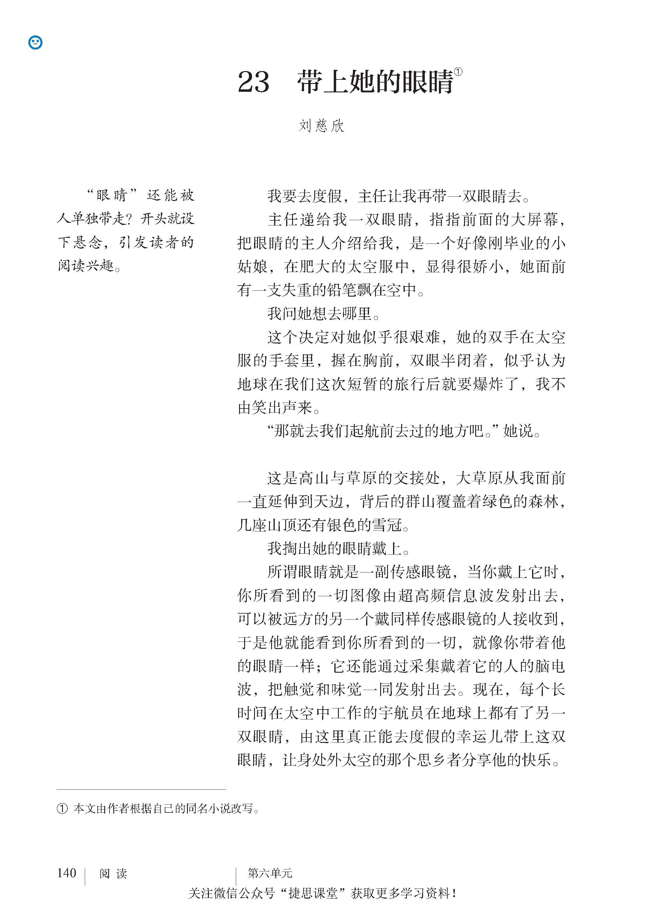 任务一 阅读与探讨22. 太空一日 / 杨利伟23. “蛟龙” 探海 / 许晨24. 带上她的眼睛 / 刘慈欣25. 活板 / 沈括任务二 搜集与整理任务三 表达与呈现课外古诗词诵读