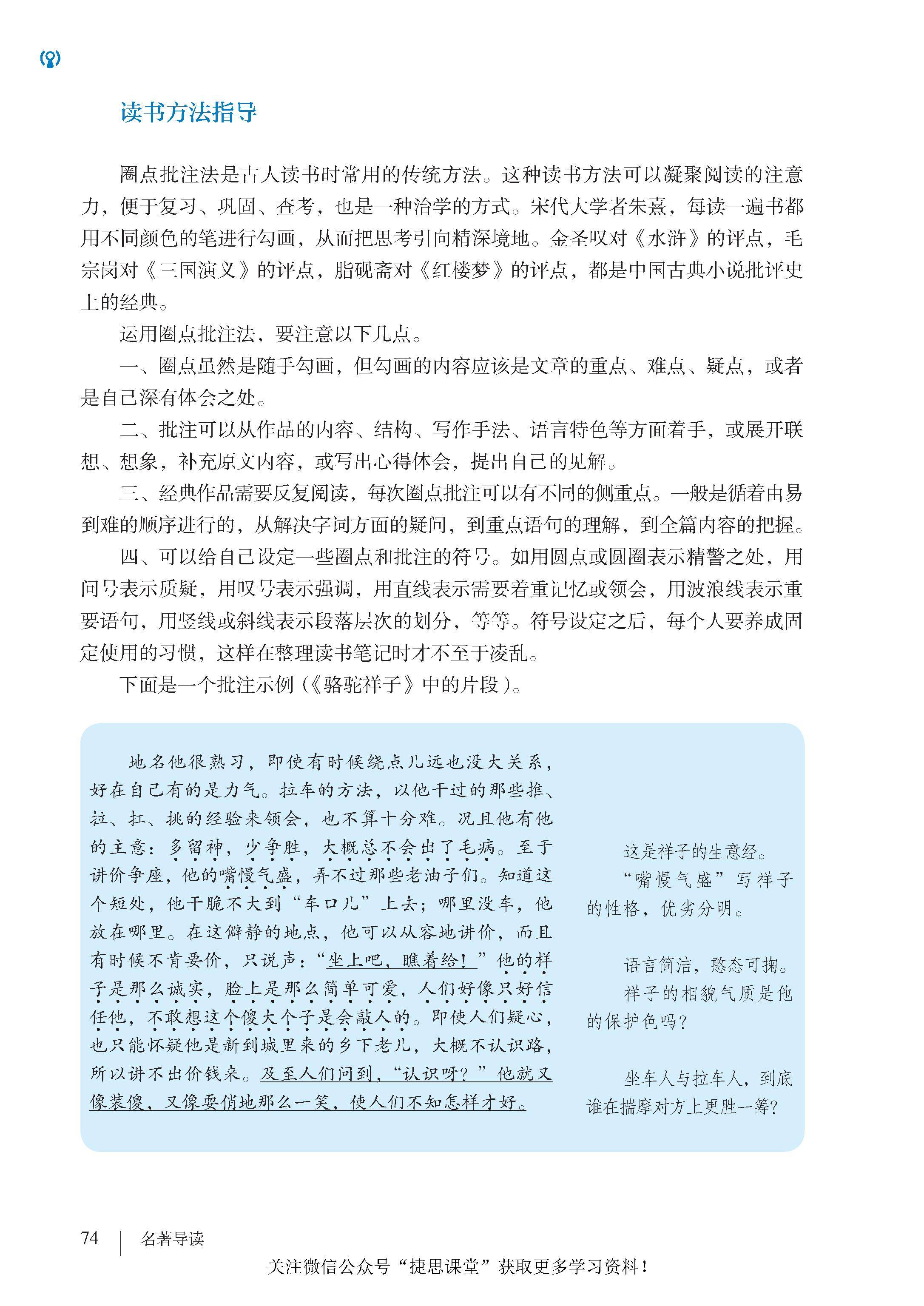 整本书阅读:《骆驼祥子》圈点、批注、做笔记