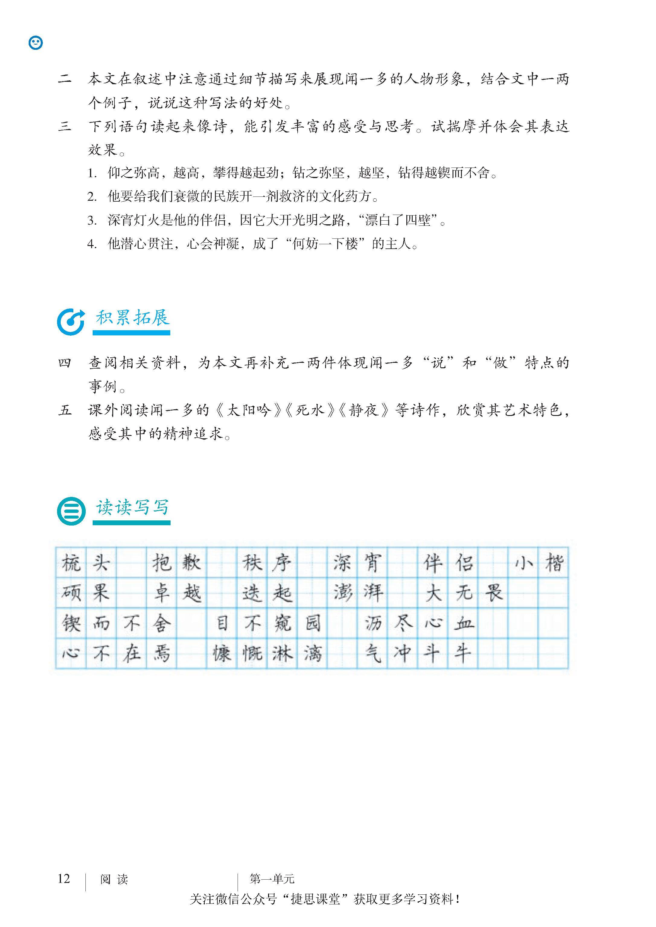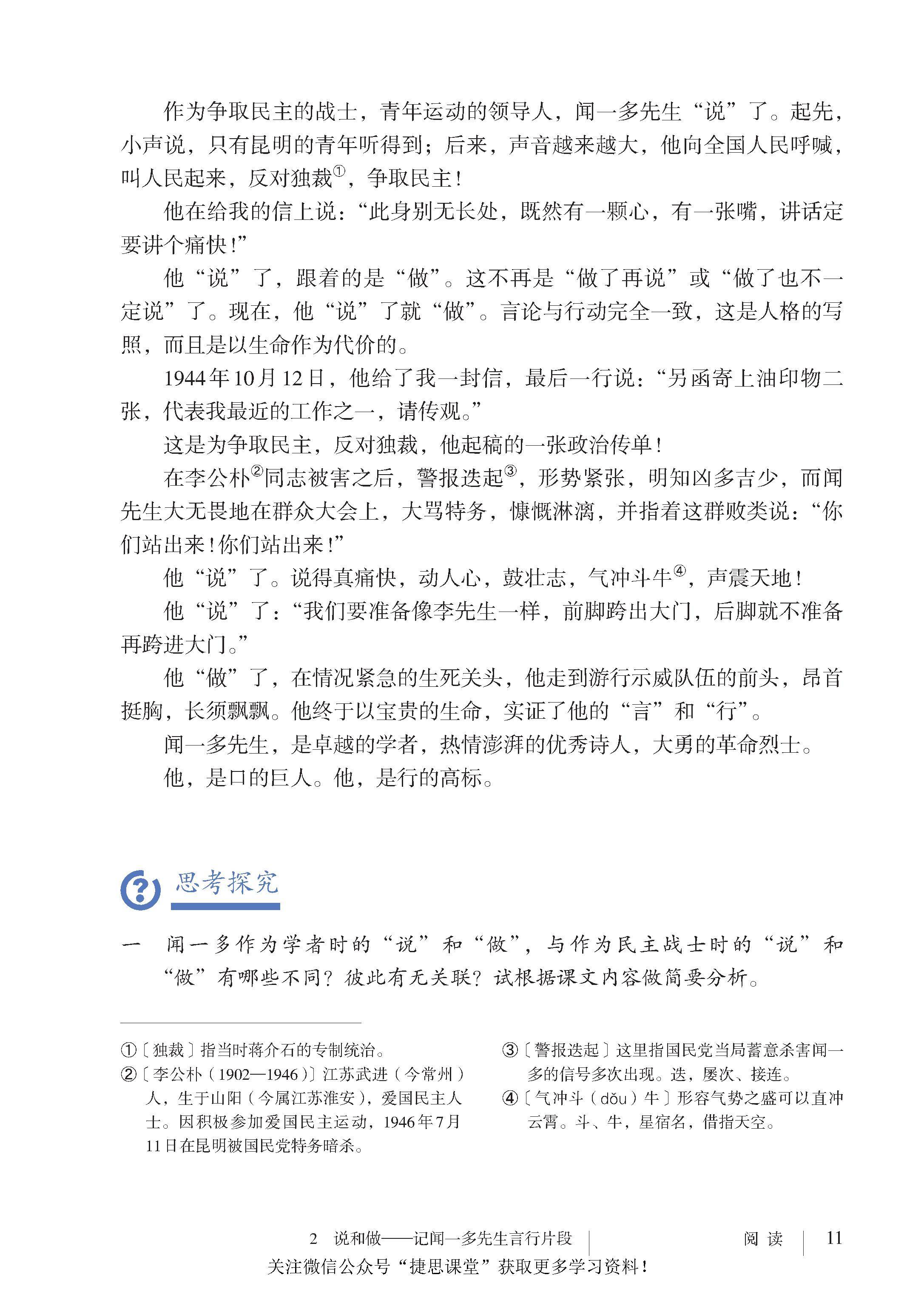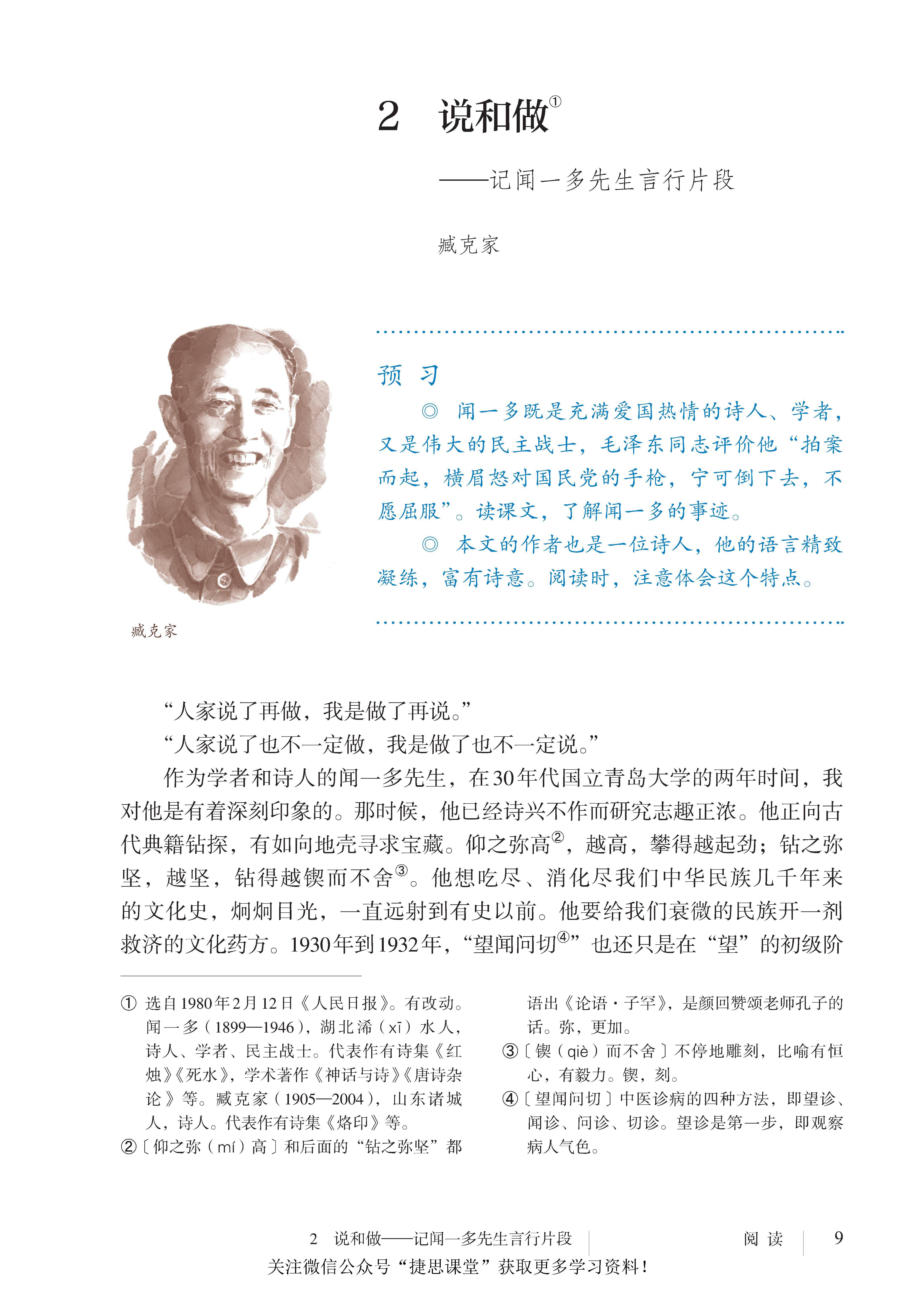 说和做 —— 记闻一多先生言行片段 / 臧克家