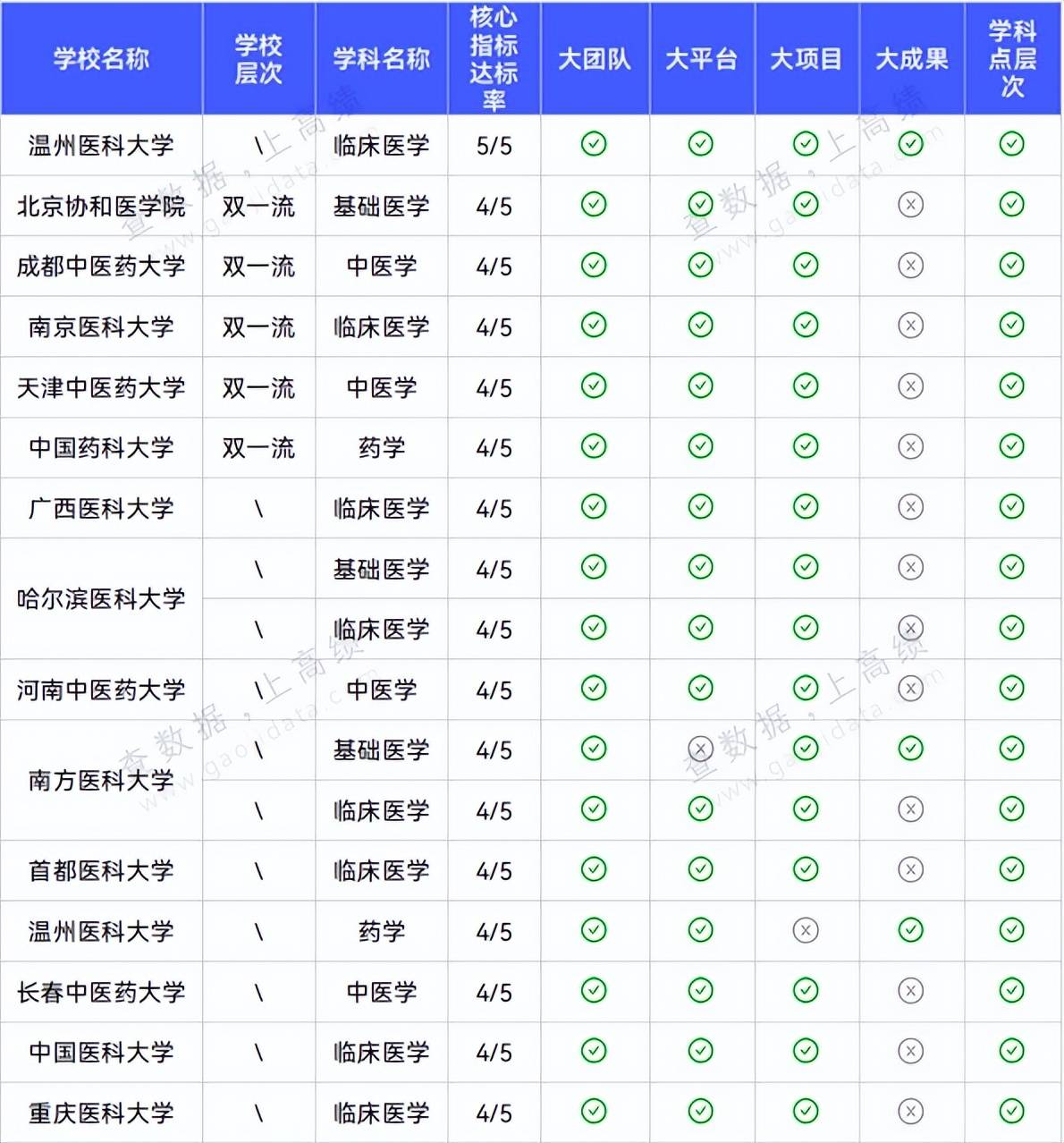根据国内高等教育权威数据查询平台高绩的统计与分析,第三轮双一流竞选中,医学类双非高校中有9所都已有4/5及以上的核心指标达标率,其中温州医科大学临床医学学科核心指标达标率更是已经达到了100%。