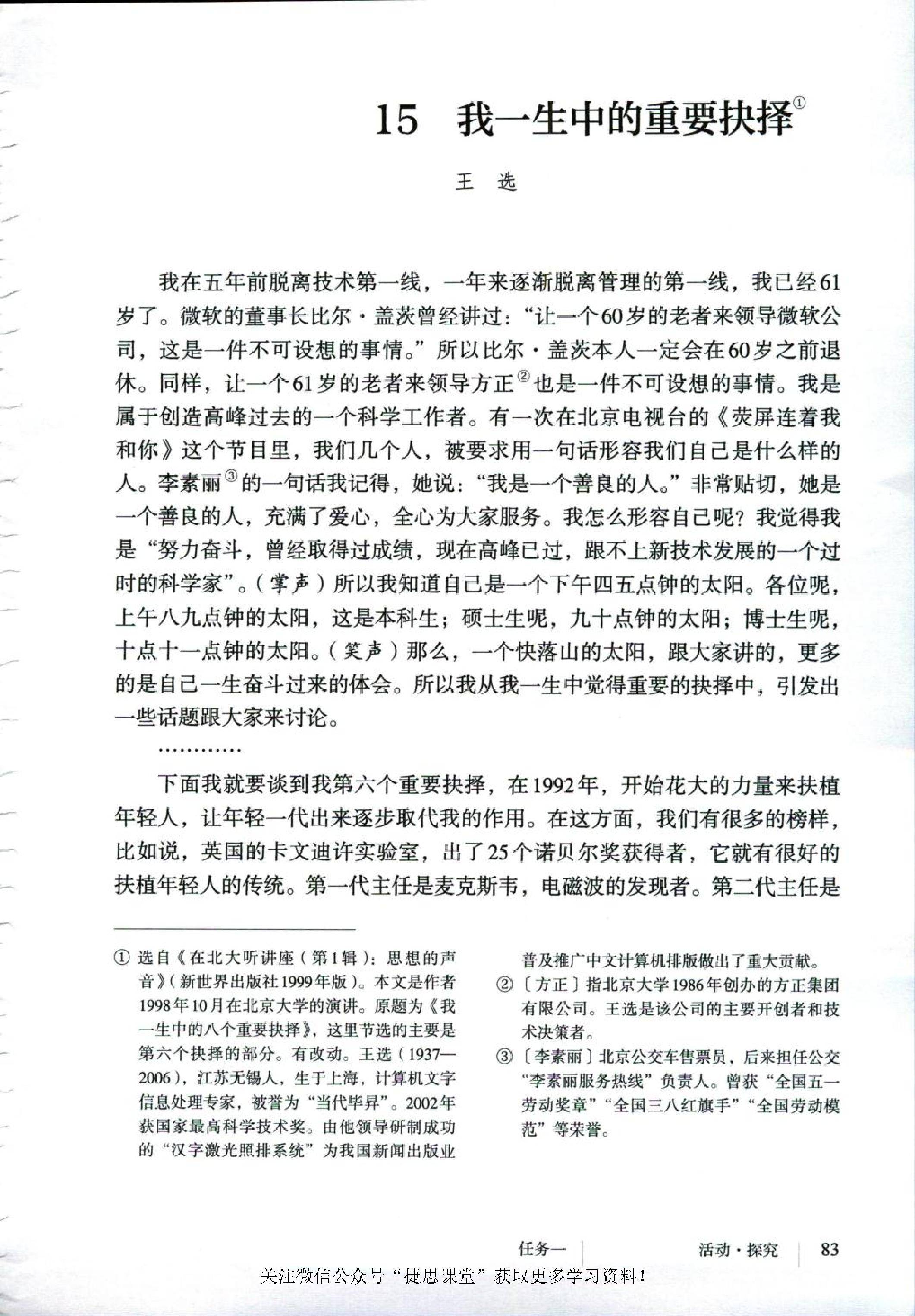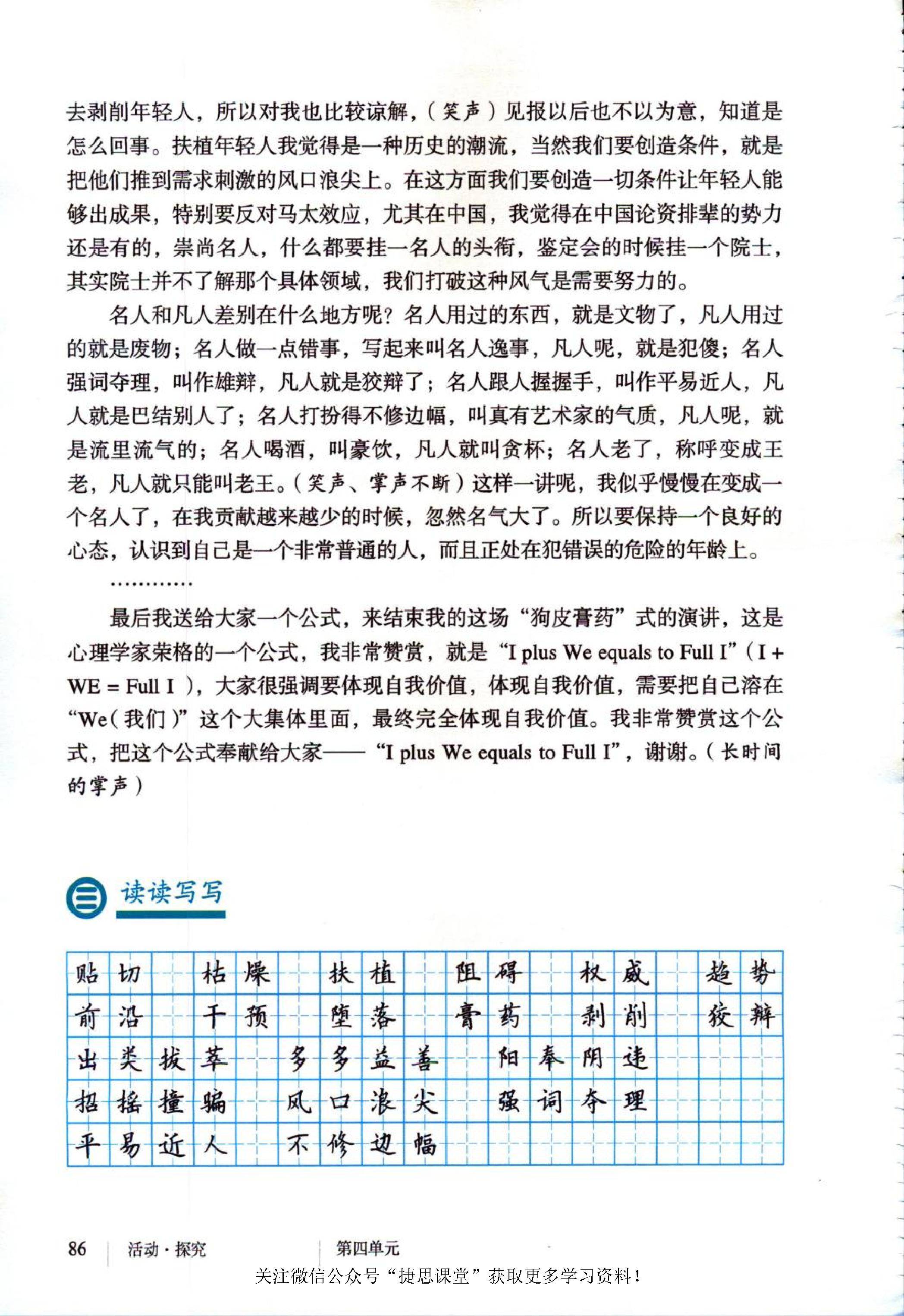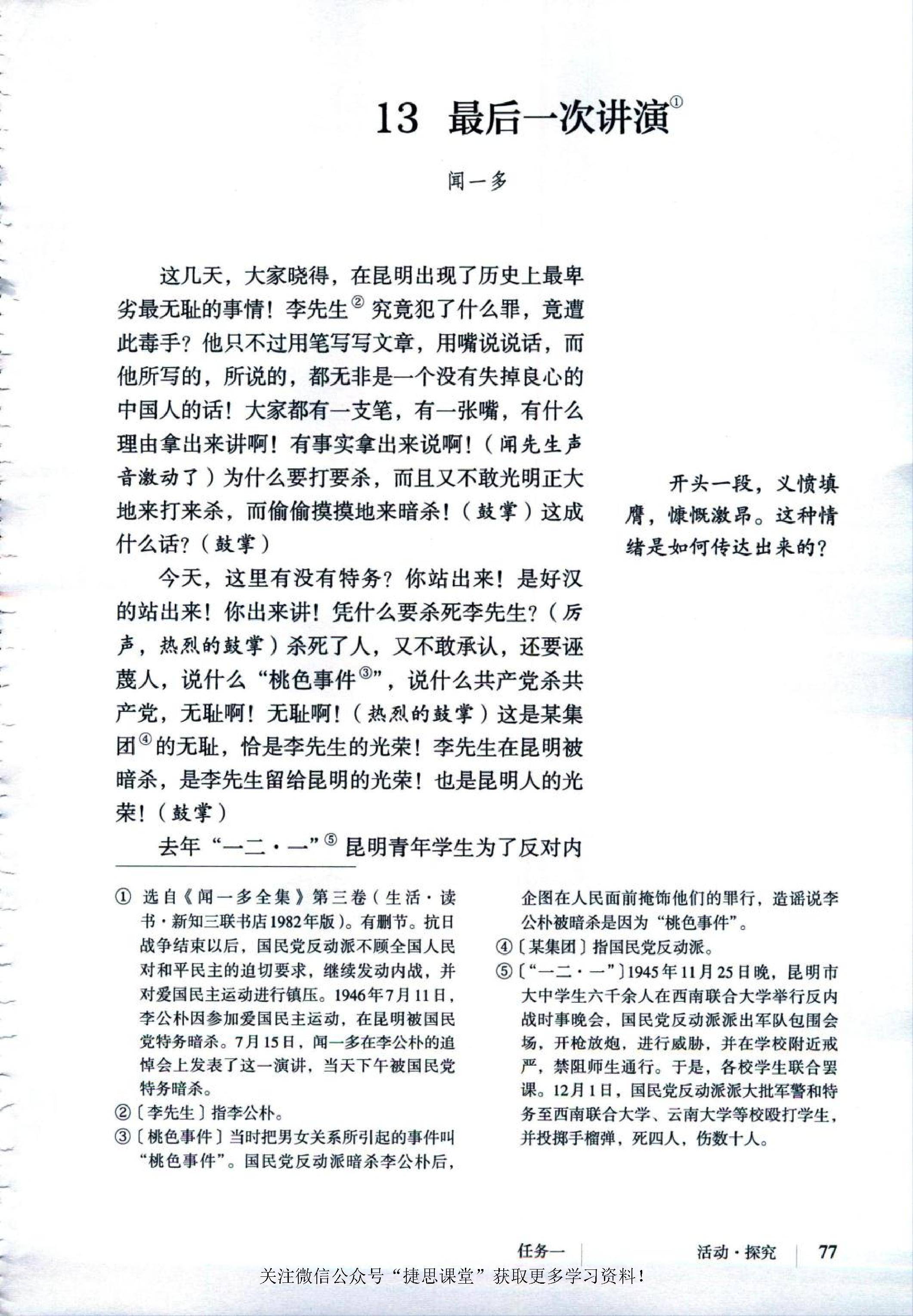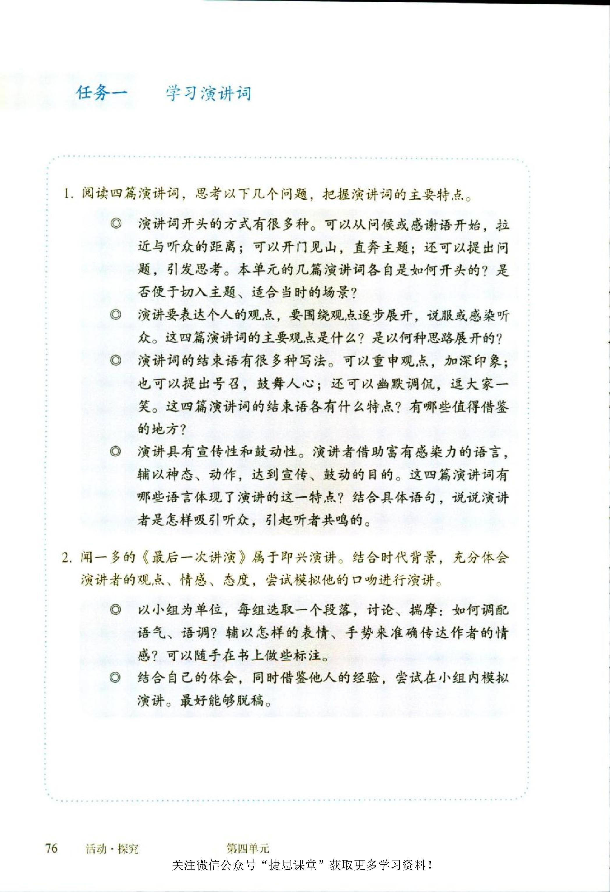 任务一 学习演讲词13. 最后一次讲演 / 闻一多14. 应有格物致知精神 / 丁肇中15. 我一生中的重要抉择 / 王选16. 庆祝奥林匹克运动复兴 25 周年 / 顾拜旦任务二 撰写演讲稿任务三 举办演讲比赛