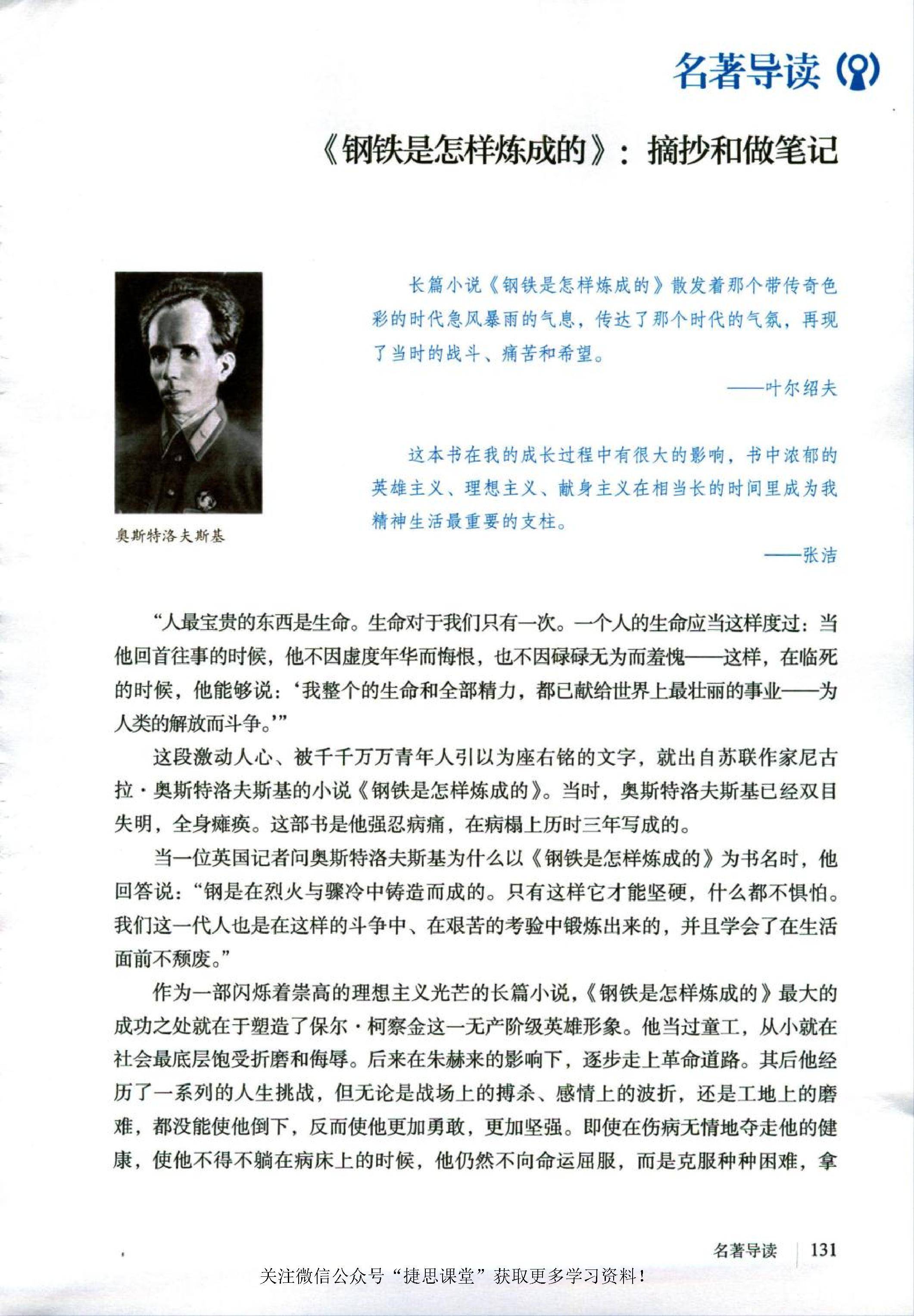 名著导读:《钢铁是怎样炼成的》摘抄和做笔记