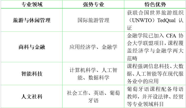 澳门城市大学设有九大学院,以下是部分优势专业: