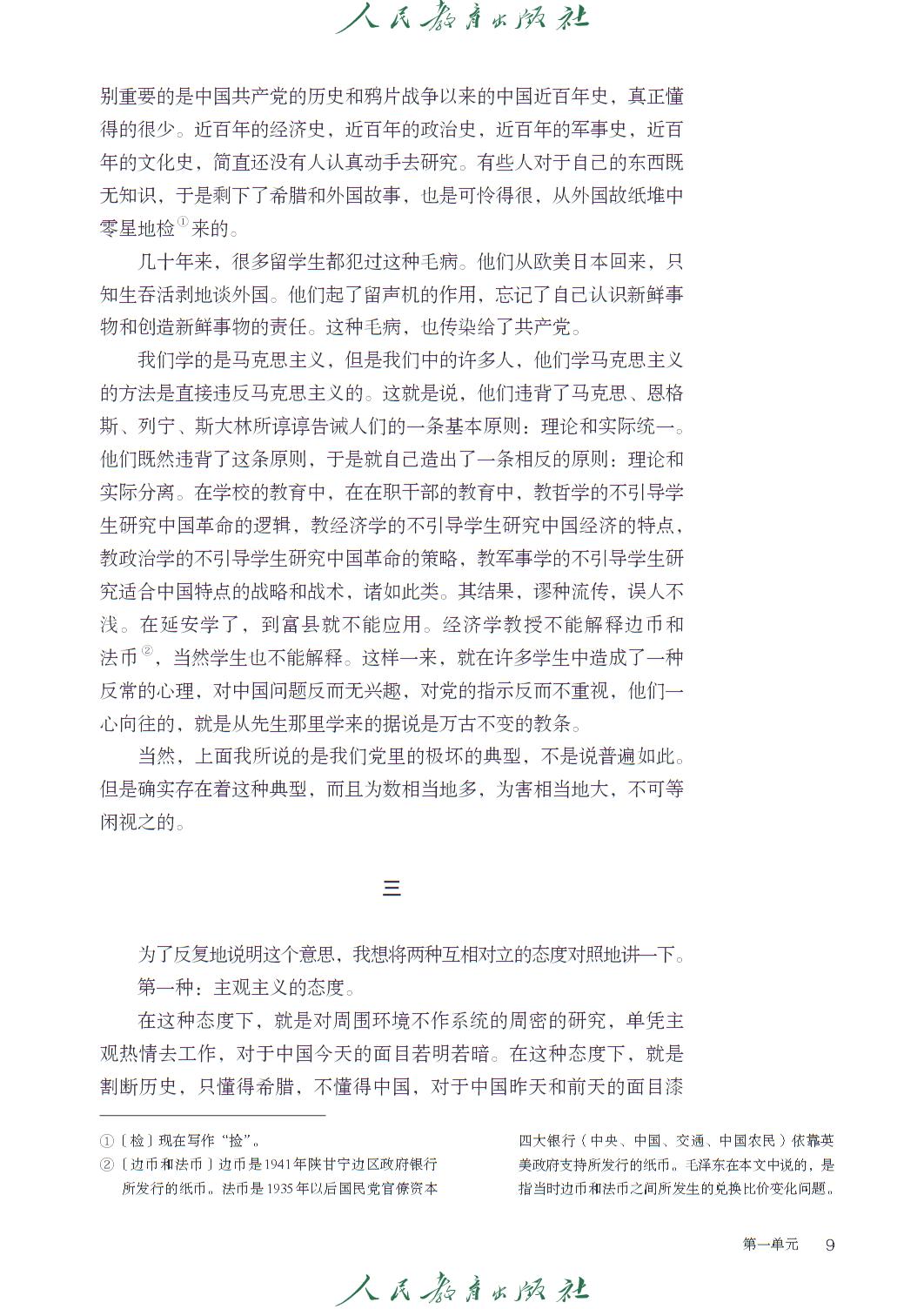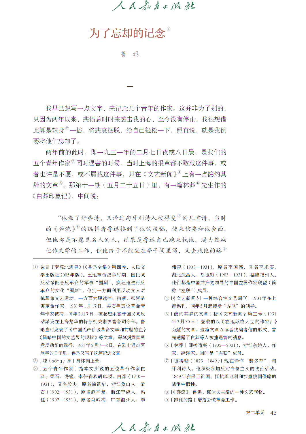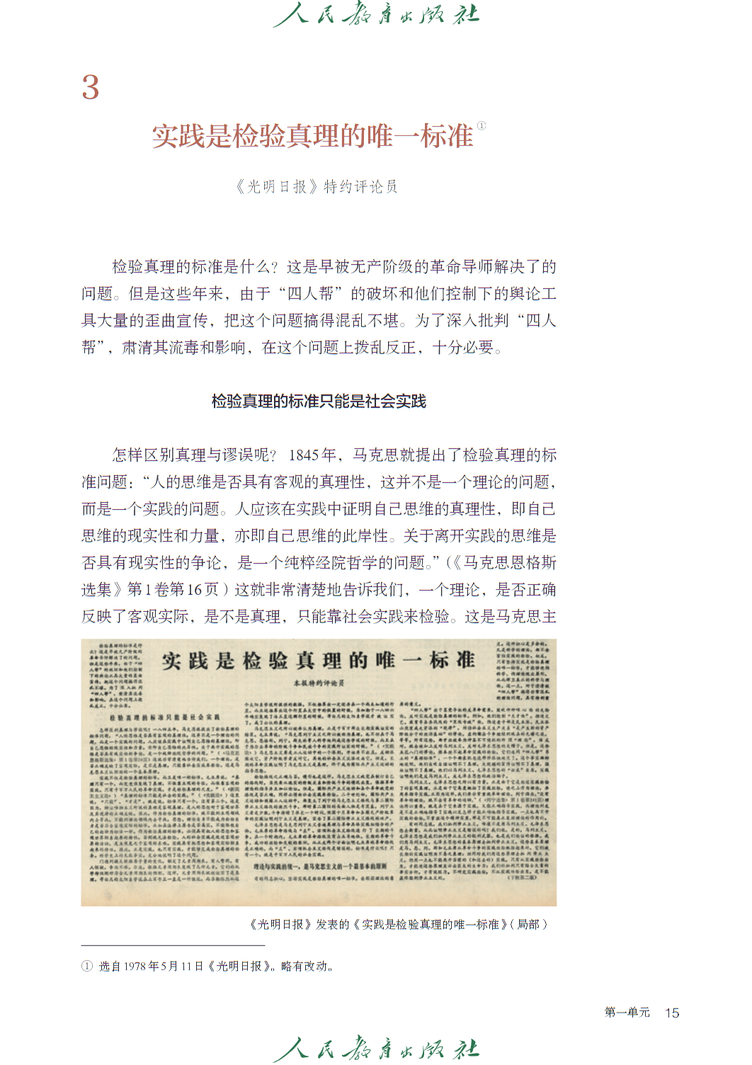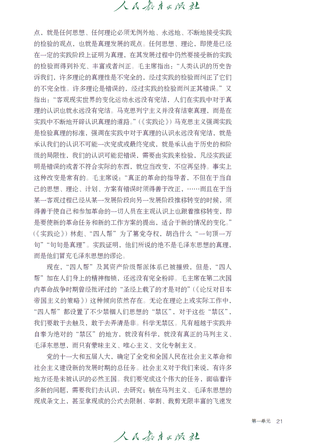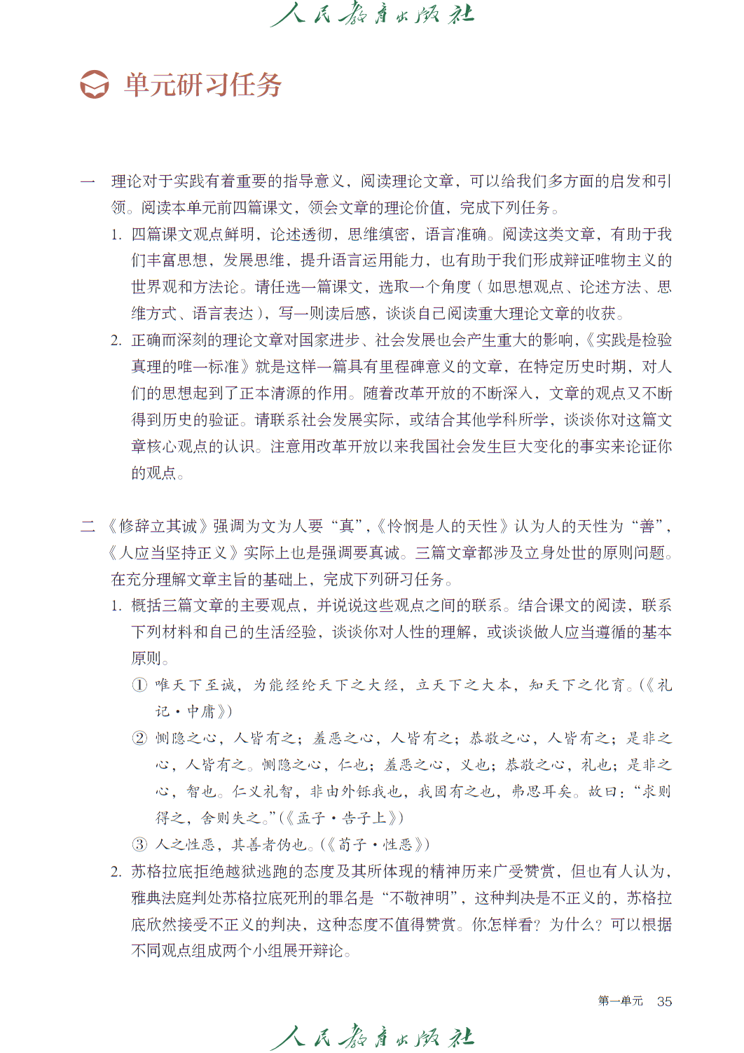 第一单元 “理论的价值” 属 “思辨性阅读与表达” 任务群,收录《实践是检验真理的唯一标准》等文本,引导学生把握理论逻辑,思考思想的现实意义。第二单元 “民族复兴的历史根基”,以《记念刘和珍君》《为了忘却的记念》等篇目,传承革命传统,强化家国情怀。