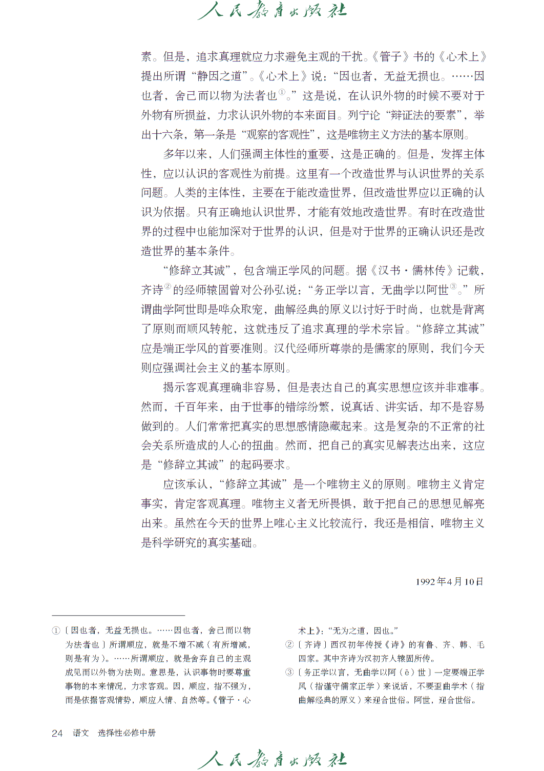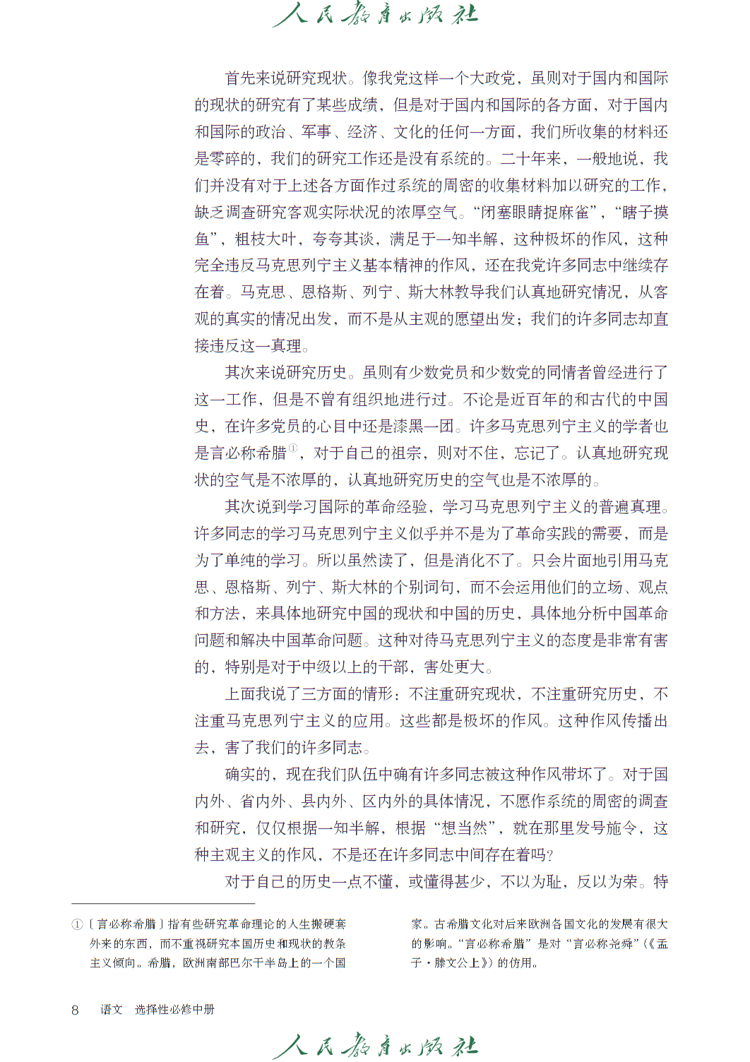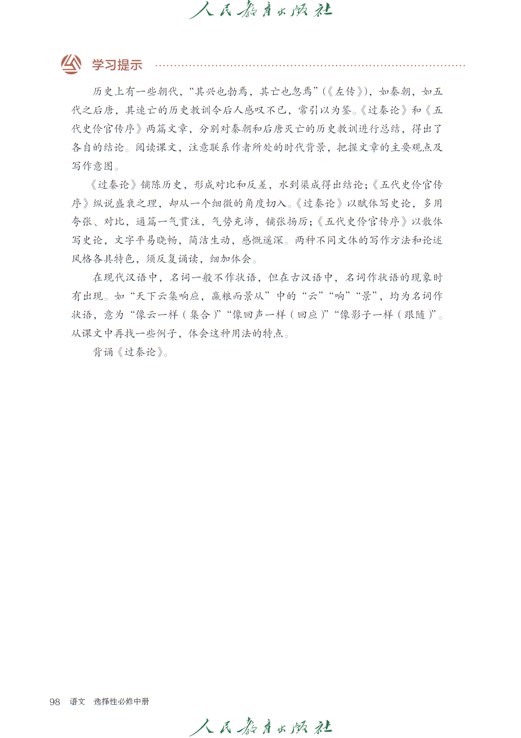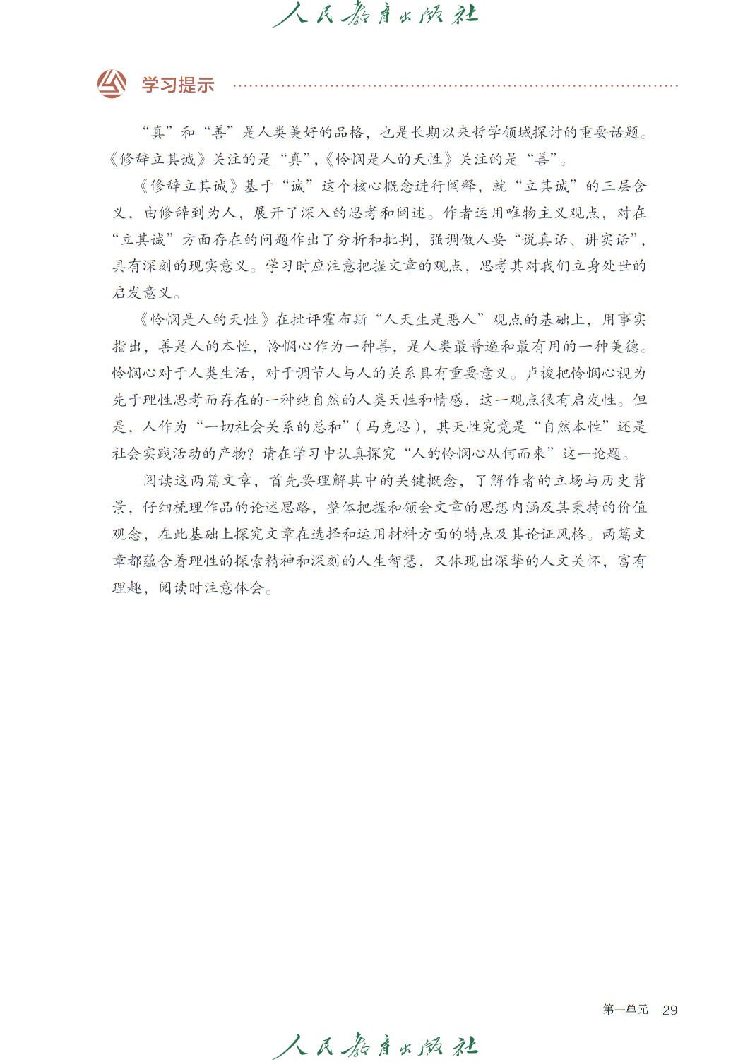 高中语文选修中册人教版电子课本,秉持 “人文主题” 与 “学习任务群” 双线编排理念,聚焦思想传承与思辨能力培育,共设四个单元及 “单元研习任务” 模块,呼应语文核心素养发展要求。