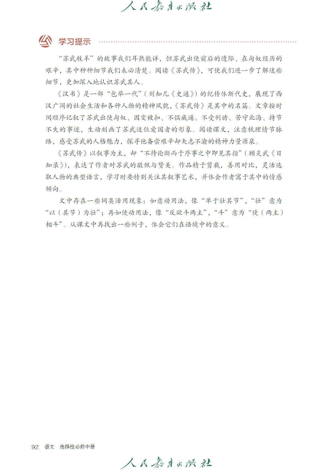 第三单元 “使命与抱负” 汇聚《屈原列传》《苏武传》等史传经典,结合情境创设与任务驱动,探究古人的精神境界与担当。第四单元 “媒介与传播” 聚焦跨媒介阅读,培养信息筛选与整合能力。教材通过读写活动与思维训练,助力学生深化文化认知,提升理性思维与表达素养。