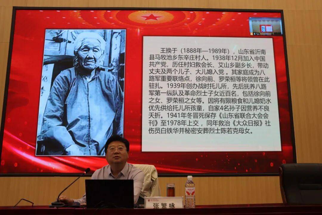 课堂上,张繁咏以沂蒙精神与伟大抗战精神的深厚渊源为切入点,将目光聚焦于“沂蒙母亲”王换于的传奇一生,用三个温暖而悲壮的故事,带领师生重温了那段烽火连天的岁月。