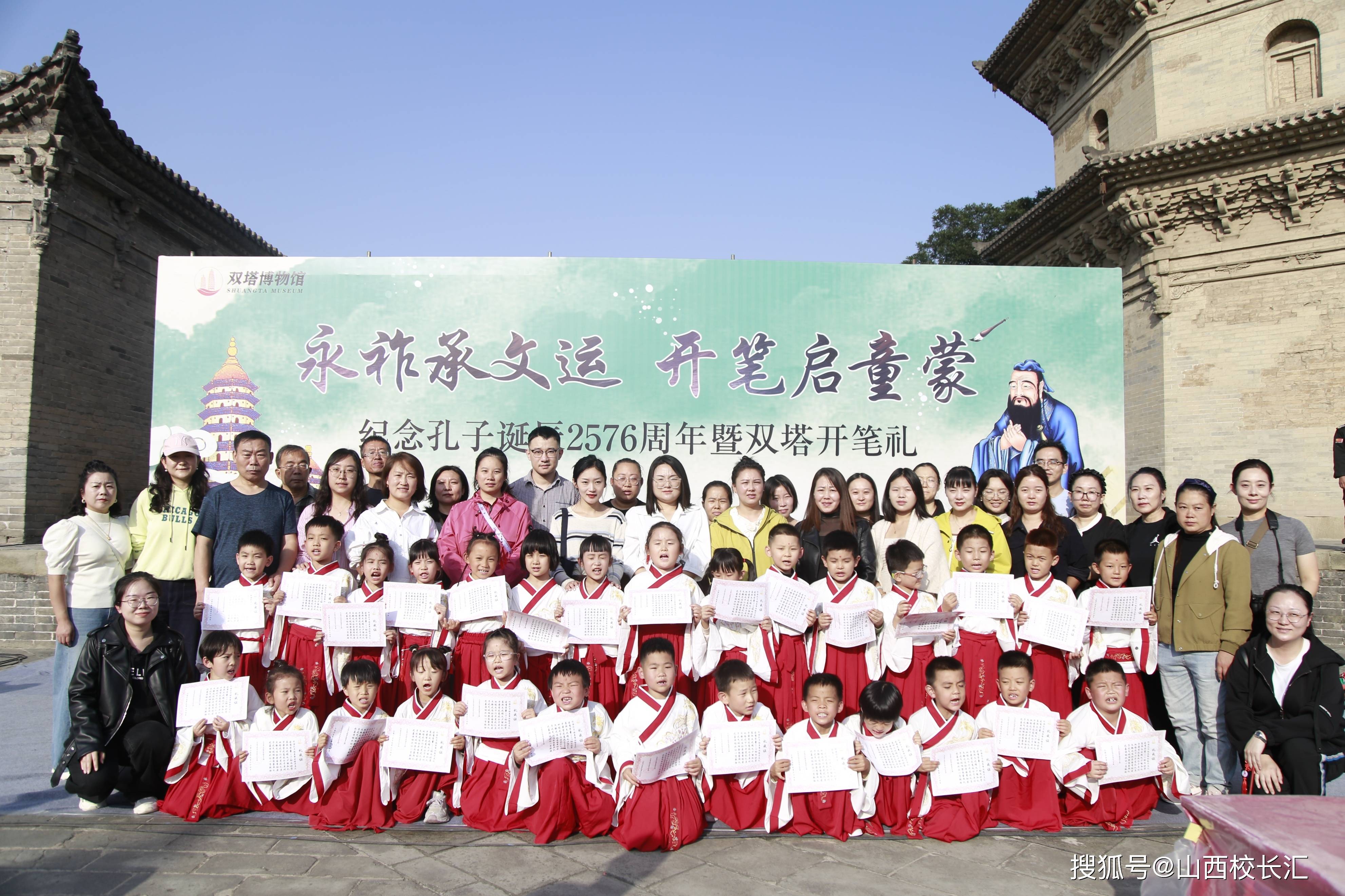 金风送爽,双塔凌霄。9月30日,太原市迎泽区迎东小学的一年级新生、家长及校行政领导齐聚双塔博物馆,隆重举行以“永祚承文运 开笔启童蒙”为主题的开笔礼活动。活动恰逢孔子诞辰2576周年,学子们迈状元桥、穿永祚门,在古建与书香的交融中开启文化人生第一步,既是对尊师崇礼的启蒙教育,更是对中华优秀传统文化的传承与弘扬。