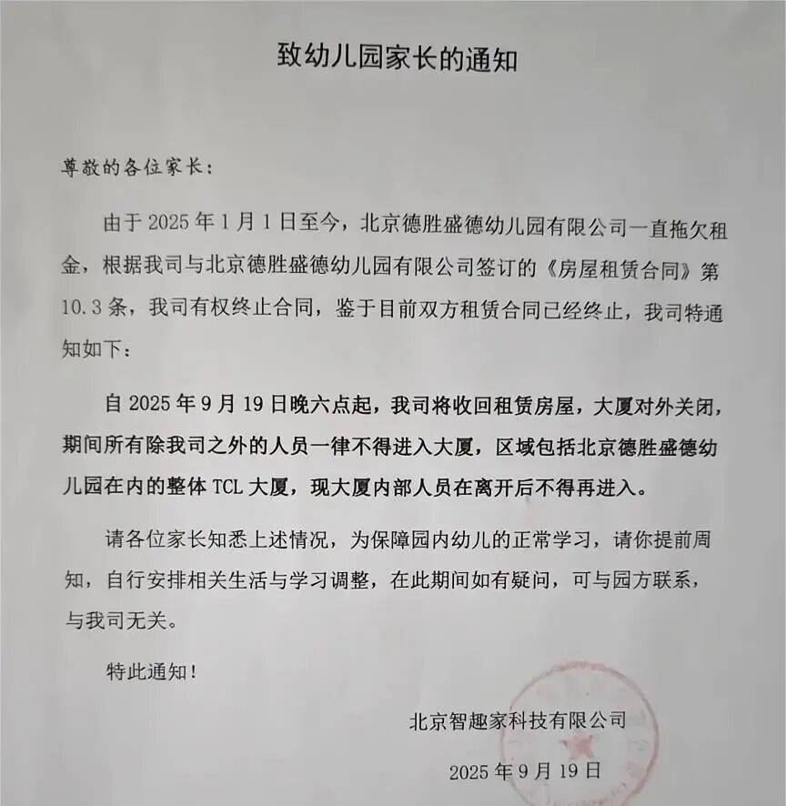 今年开学季,北京西城区德胜门的一所幼儿园发布了一则《致民办园家长的通知》,让家长群里炸开了锅。