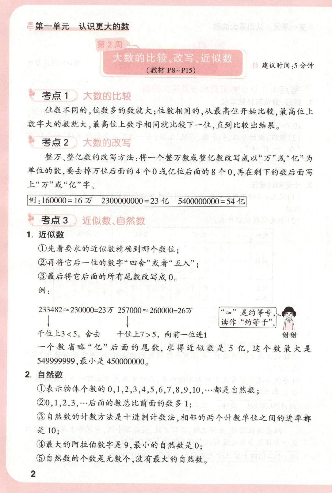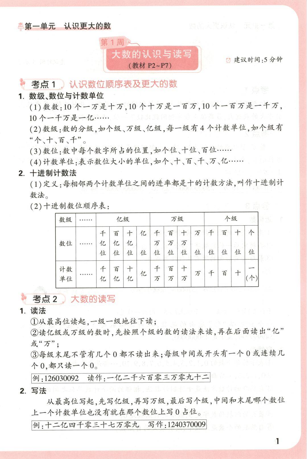 今天为大家分享:25秋《周末小测卷》4年级上册数学北师大周末复习清单,涵盖多个单元的数学知识。第一单元 “认识更大的数”,涉及数级、数位、计数单位,还有十进制计数法,以及大数的读写、比较、改写和近似数,像介绍了数位顺序表,大数读写的规则,不同位数大数比较的方法,整万、整亿数改写的方式,求近似数的步骤等。