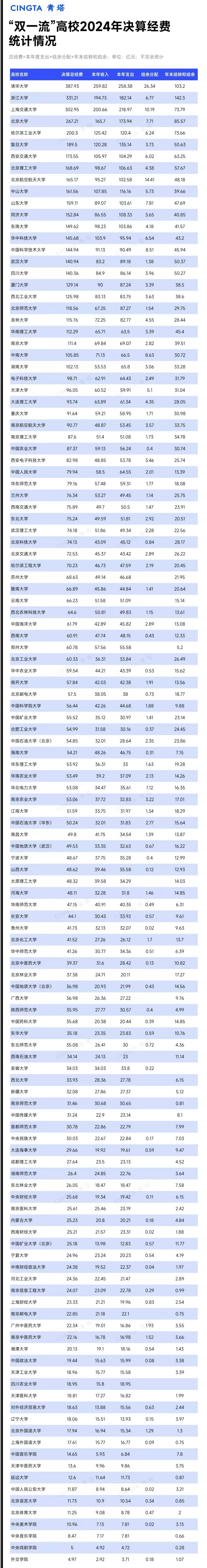 从2024经费决算来看,有3所高校超300亿元!有2所高校在200亿-300亿之间!共计有25所高校,2024决算经费超100亿。