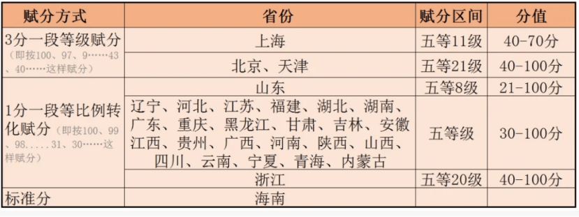 各地赋分方式
