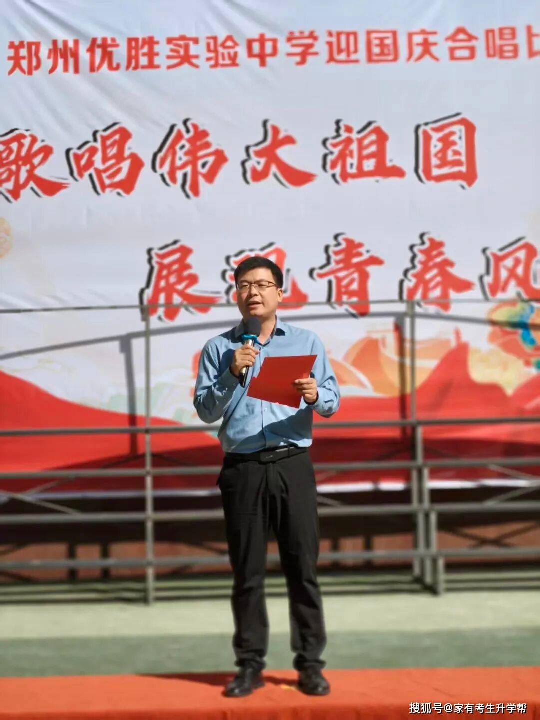 为庆祝中华人民共和国成立76周年,喜迎中秋、国庆双节,大力弘扬爱国主义精神,丰富校园文化生活。9月30日下午,郑州优胜实验中学举行了“歌唱伟大祖国 展现青春风采”迎国庆合唱比赛。高一高二全体师生齐聚一堂,用嘹亮的歌声为祖国母亲献上最深情的祝福。