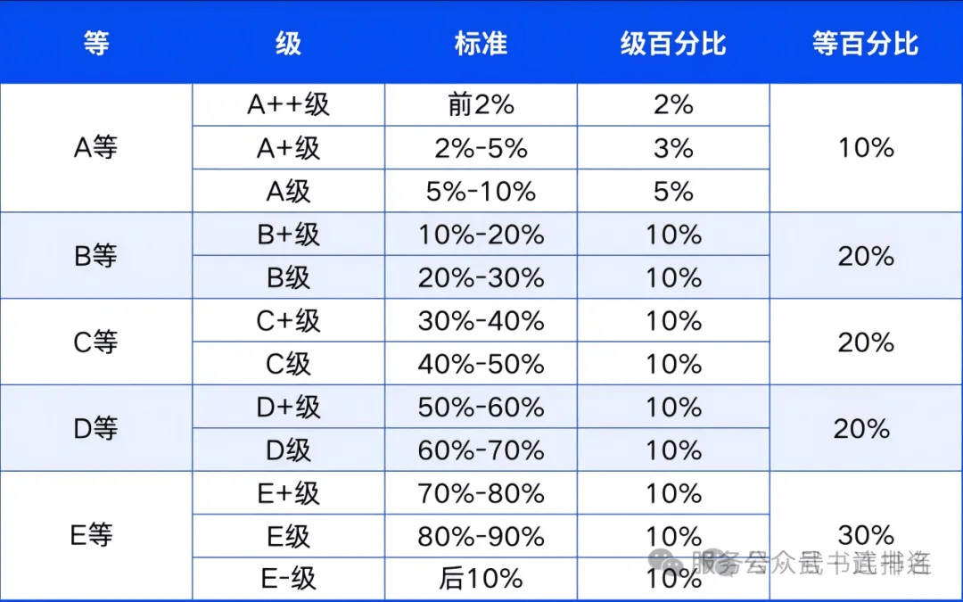 根据等级划分标准,A++级为前2%,当评价对象不足25个时,A++不出现,此时第1名为A+级或者A级。当评价对象小于5个时,A+、A不出现。