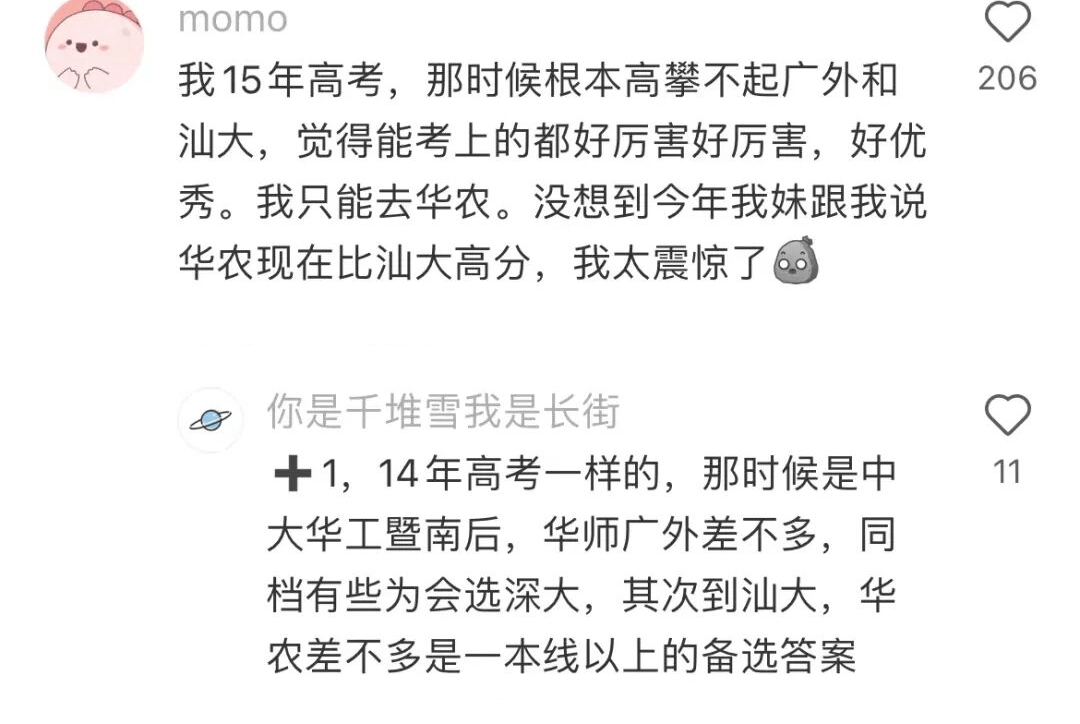 乘着改革的东风,汕头经济特区在上个世纪高速发展。千禧年初,经济与贸易专业又是王牌中的王牌。汕头大学在广东自然是放在一本批次进行招生,毫无疑问是妥妥的重本大学。但时过境迁,由于区位优势不如广深,广深乃至全国的高分考生自然不会把汕头作为志愿填报的首选,因此生源优势逐渐消失。进而导致被其他众多名校甩开差距,甚至被广大、广工、深技大等学校后来居上。