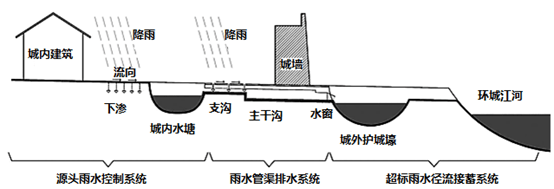 福寿沟是我国宋代时期建成的地下排水系统,是世界上早期最杰出的排水系统之一,它位于江西省赣州市章贡区老城区地下,是赣州古城地下的大规模古代砖石排水沟管系统。下图是福寿沟工作原理示意图。据此完成下面小题。