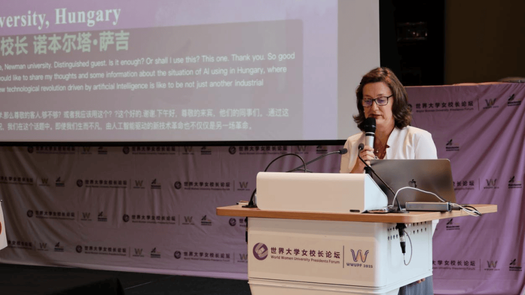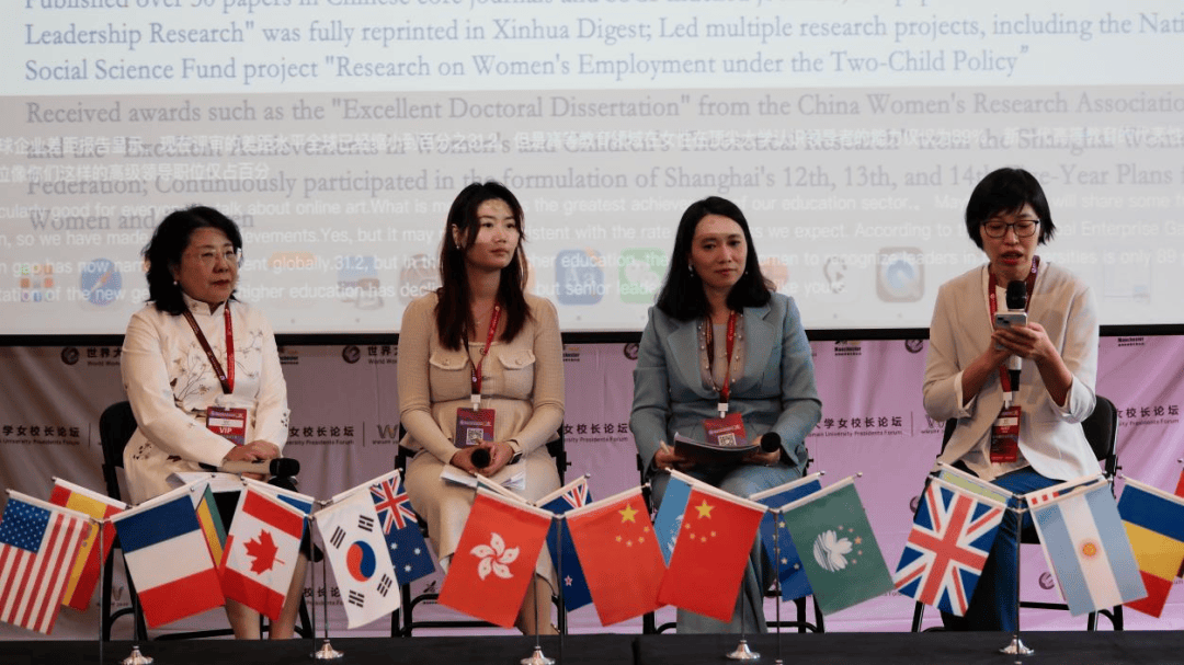 “未来教育:人与科技”平行论坛暨曼彻斯特大学中国论坛主题分享由中华女子学院原副校长、浙江师范大学性别研究中心主任刘梦主持,南京传媒学院校长王更新、宁波诺丁汉大学副校长张毓隆、玻利维亚多明戈·萨维奥私立大学校长宝拉·佩里科内、匈牙利约翰·冯·诺依曼大学副校长诺本尔塔·萨吉、澳门科技大学协理副校长梁文慧、芬兰坦佩雷大学访问学者、客座研究员,女性领导力与AI研究专家甘斌作主题发言。
