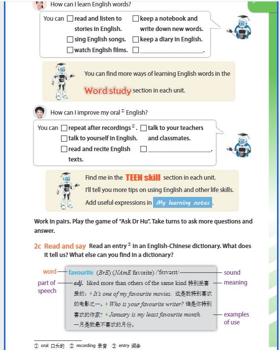 从课本句子中记单词(如记 “develop” 时,结合句子 “China is developing quickly.”,知道 “develop” 是 “发展”,词性是动词 v.),比单独背单词表更易理解用法;