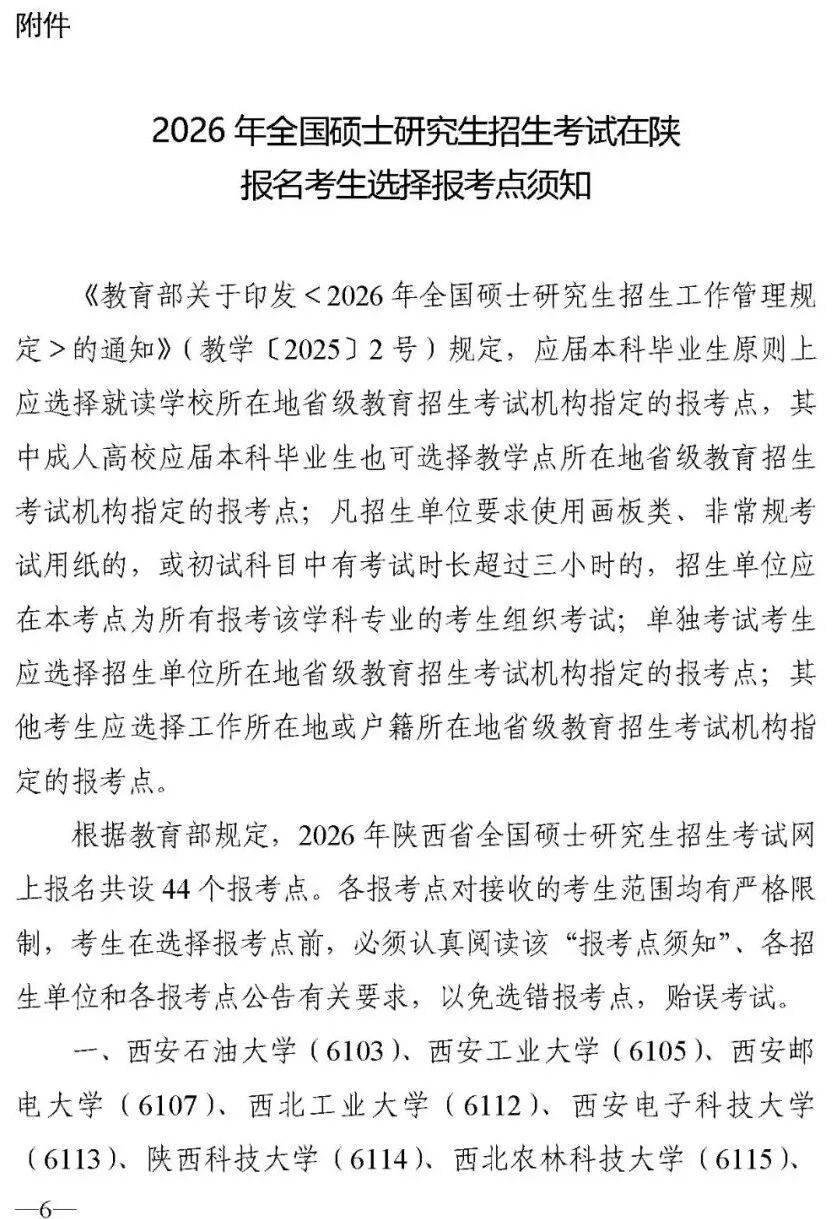 请各考生按照《2026年全国硕士研究生招生考试在陕报名考生选择报考点须知》选择报考点。