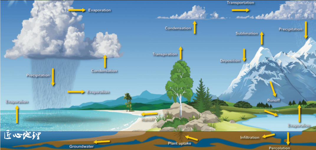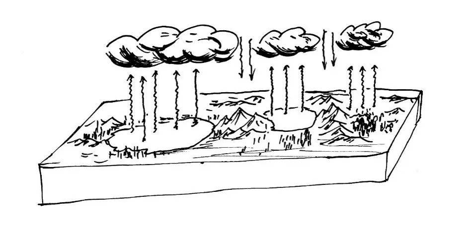水汽从蒸发表面进入低层大气,这里的温度高,所容纳的水汽较多,如果这些湿热的空气被抬升,温度就会逐渐降低,到了一定高度,空气中的水汽就会达到饱和。