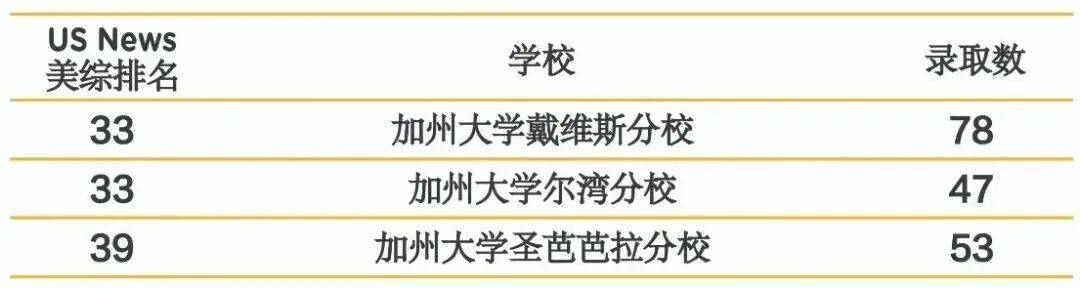 除上述学校以外,加州系的其它学校也对星校学子青睐有加,尽管排名每年都有变动,但是这些学校对星校始终如一的认可是星校整体实力的集中体现。