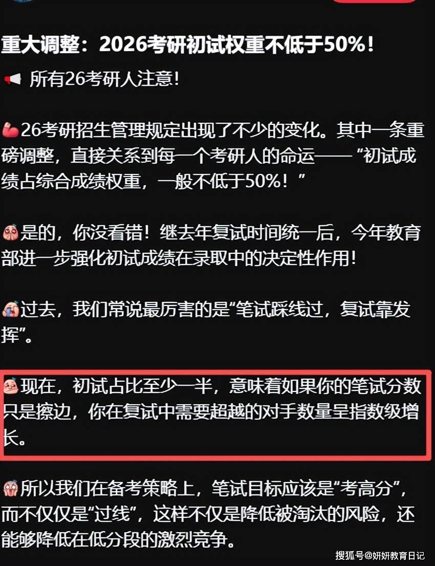 委婉地给你一个复试低分让人痛苦,但是从 2026 年开始再有一个历史性的重大调整,所有同学都应该注意, 据说 26 年考研的招生管理规定已经出现了不少变化,但是我们今天讲的这个确实关乎到每一位普本生未来命运的。