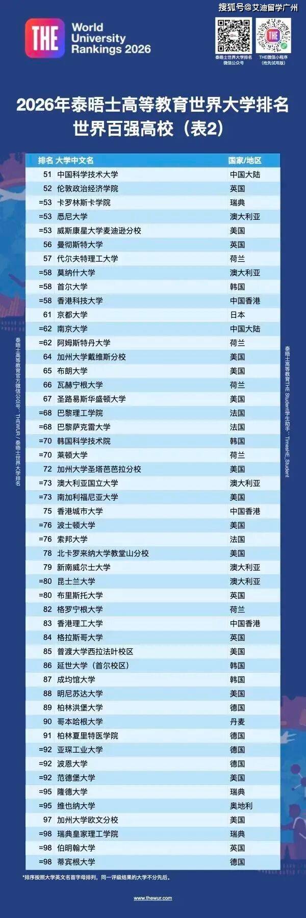 重磅!2026 THE 泰晤士高等教育世界大学排名发布!今年是THE发布的第22版世界排名。