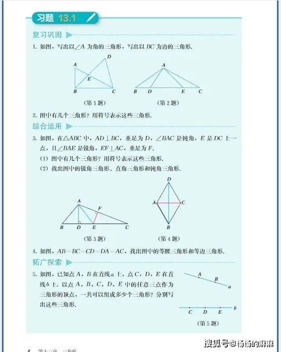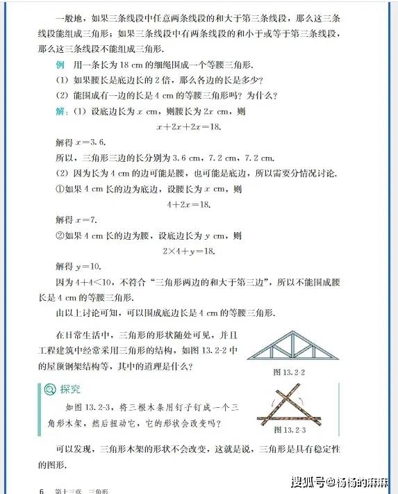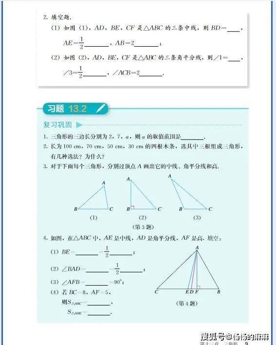 - 等腰三角形计算:“已知等腰三角形顶角为 80°,求底角”((180°-80°)/2=50°);