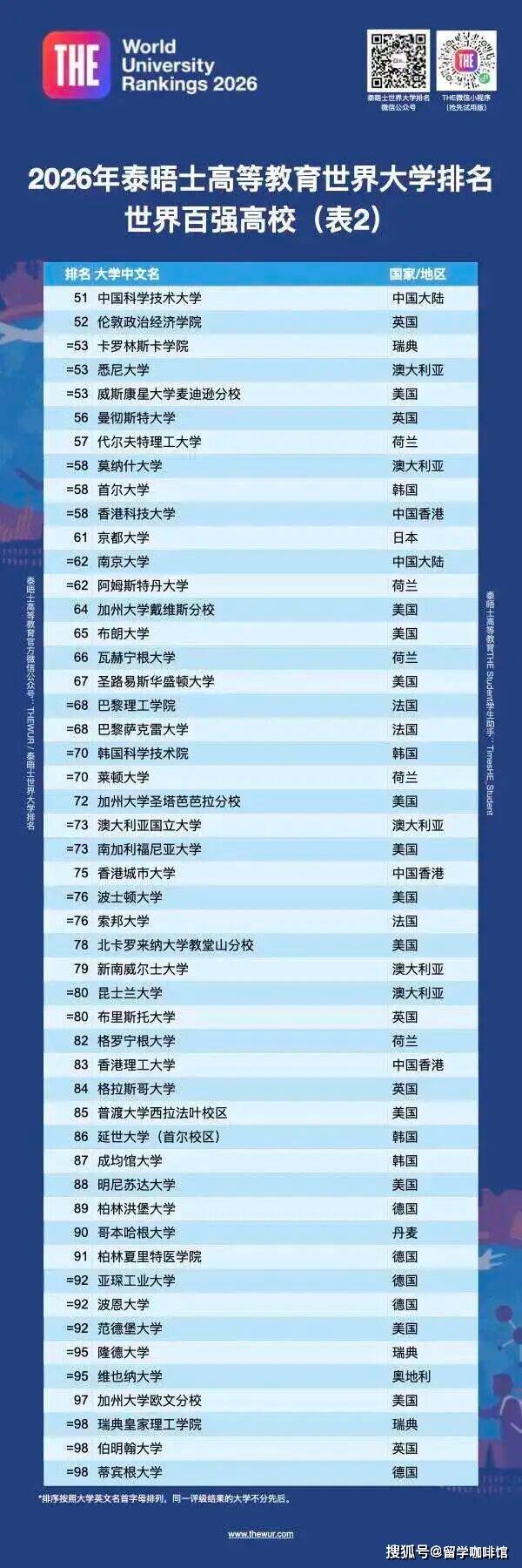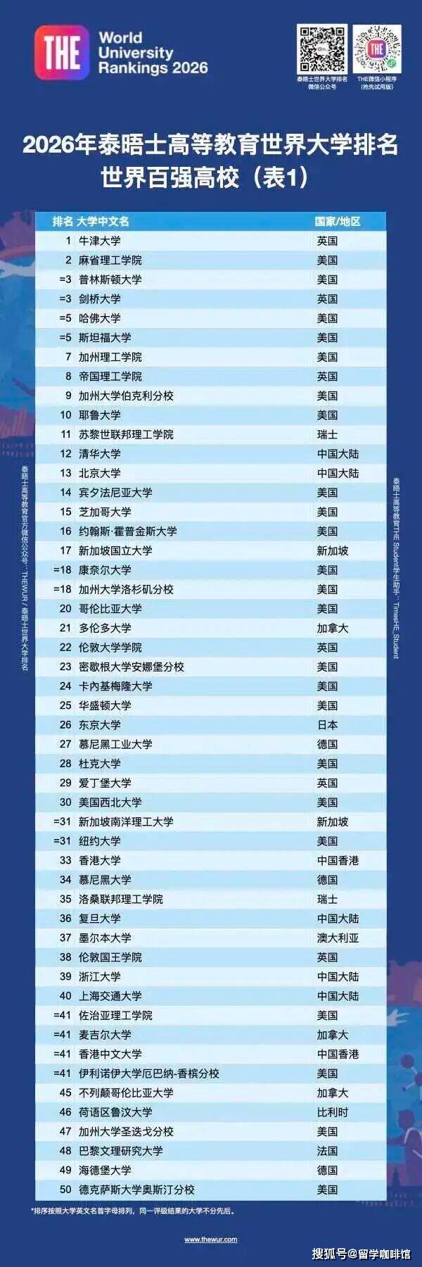 就在昨天,2026 泰晤士高等教育(THE)世界大学排名重磅发布!