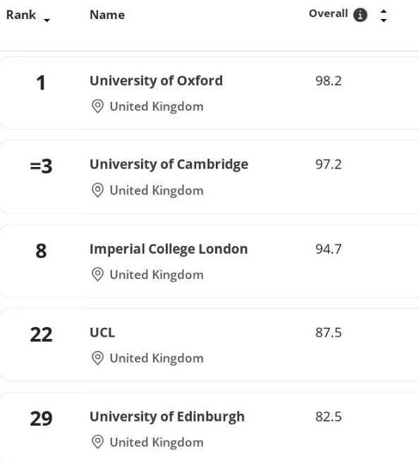 必须要看到的是,英国顶尖高校的统治力依然强大:牛津大学连续十年蝉联全球第一,剑桥大学稳居前三,帝国理工学院位列第八,三所院校构成全球顶尖教育的“英国铁三角”;爱丁堡大学、曼彻斯特大学、布里斯托大学等老牌名校排名均保持稳定,形成坚实的“中流砥柱”梯队,印证了英国高等教育的深厚积淀。