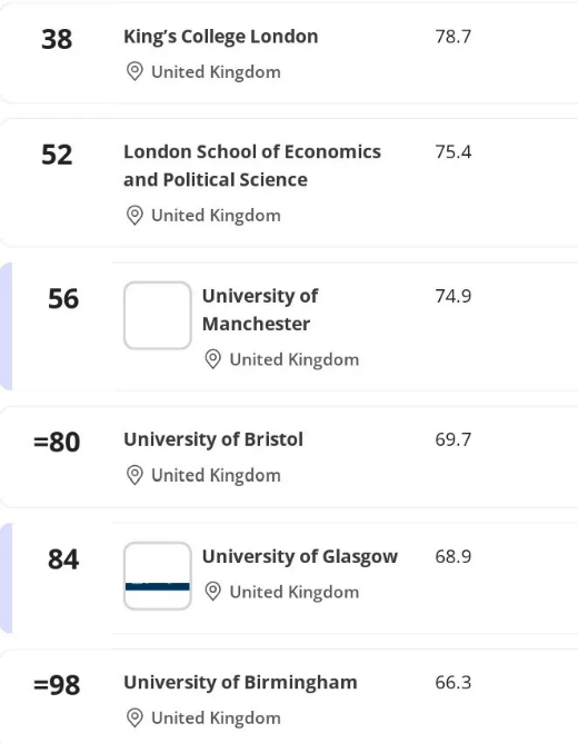 更引发关注的是伦敦政治经济学院(LSE)的下滑:该校不仅从THE前50跌出,在QS、软科等榜单中也未能跻身前50。作为社会科学领域的全球顶尖学府,LSE的学术实力并未减弱,但对于报考“世界前50高校优先”的选调生岗位、申请一线城市高端人才引进计划的毕业生而言,排名变化可能带来现实阻碍。